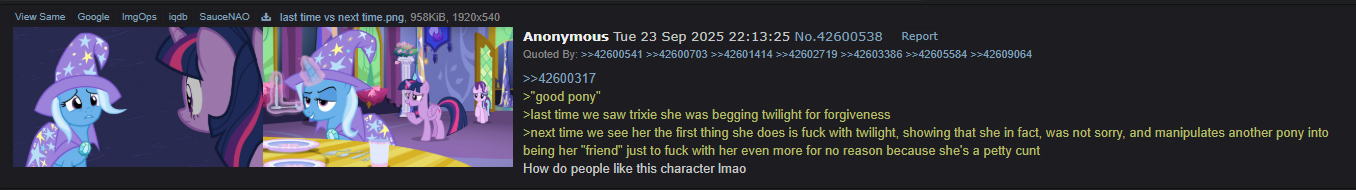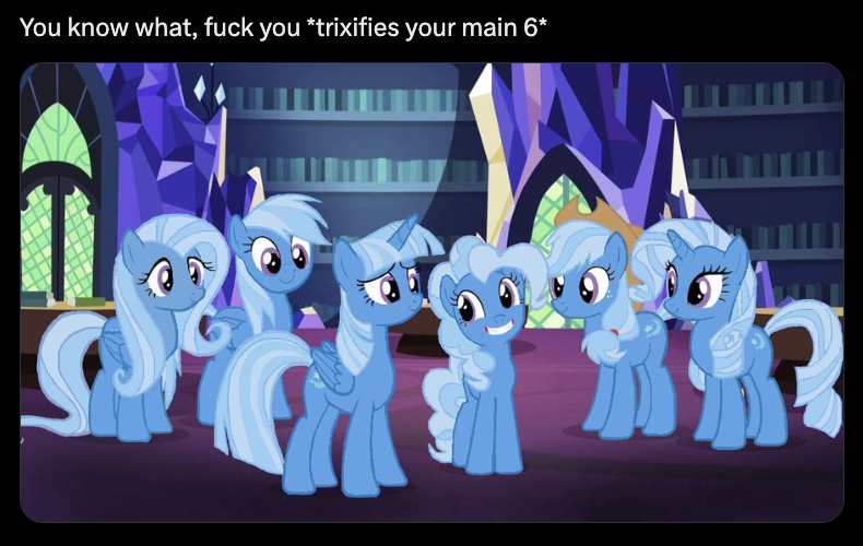 >>42999989>Explain why you like trixie?I don't.