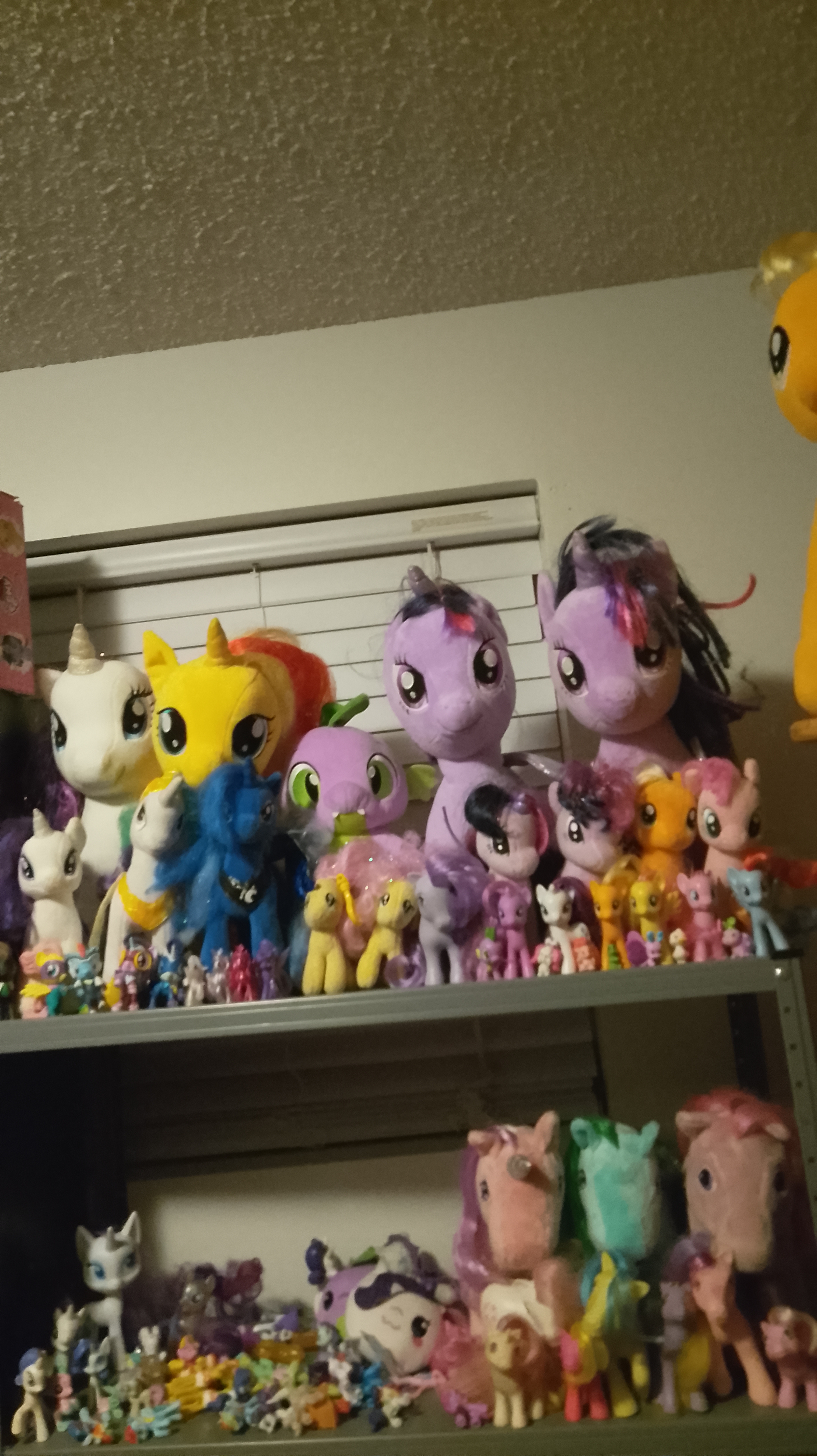 >>42993284Have you considered painting your Pinkie shelf? Maybe pink with the shelves alternating between the blue and yellow of her cutie mark balloons? Regardless, your collection is amazing and I admire your merch tism