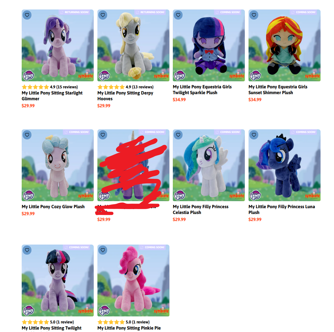 Symbiote store updated with a new wave of Characters. I was really hoping for a S1 Luna. I wonder if they'll do a pony Sci-Twi.