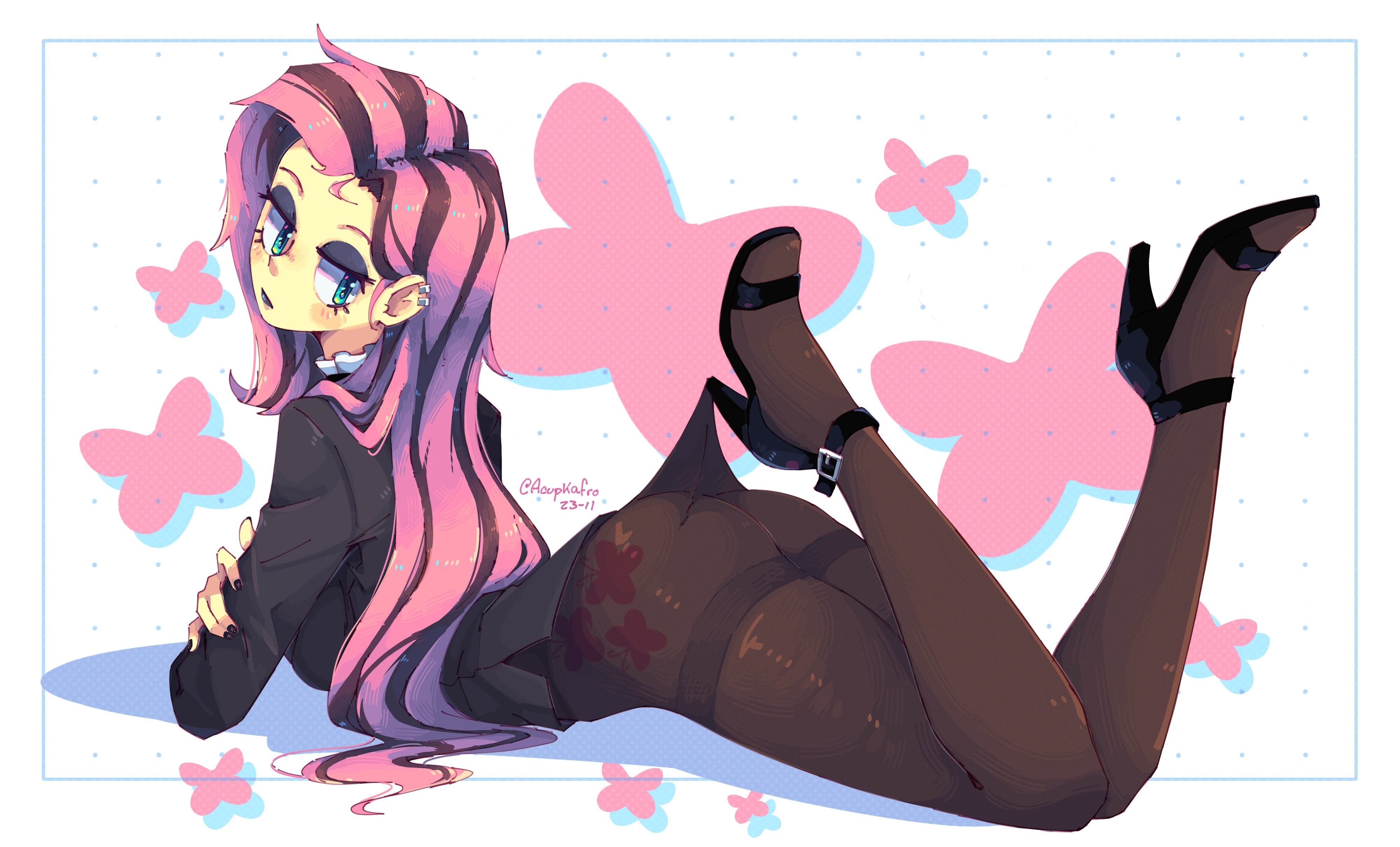 >>43009399The whole pose, hugging a pillow facing down with the left heel caught in the rear of the pantyhose. Drawn from that specific angle. That's the meme.