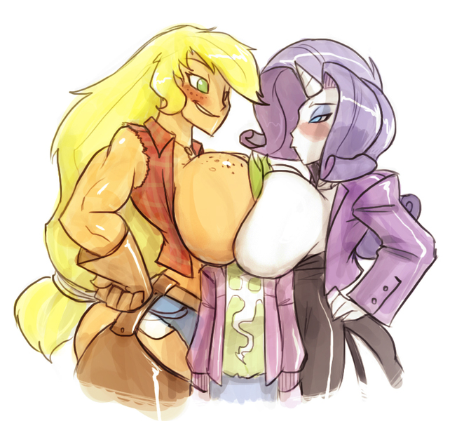 >>43007681There was only ONE way out of the danger I saw. "I'd like to make a better offer!!" I said hurriedly.>THAT got them to stop. But I had to talk quick."Look I trust Applejack, but she is very strong and my boy bits are very sensitive and she would be groping BLINDLY. That sounds potentially VERY bad to me and anyone who wants to use those boy bits in the near future.">Senpai asked "So what's your better offer?"I sighed and said "Instead of the blind groping, why don't I just place 'myself' directly in her hand, which is what I'm pretty sure she wants anyway?">The girls looked at each other and started nodding.>Except for Fluttershy who said "No.">All eyes turned to Fluttershy as she said "Sunset, he only offered that to avoid pain. We agreed at the beginning we wouldn't use pain on him.">Applejack spoke up "She's right. I'm sorry Anon. I guess I got carried away. But what do we do instead?""No worries Applejack. No harm was done. Does your theme say whose hands?">Applejack just smiled.>Soon I was tightly sandwiched between Applejack and Rarity in the narrow hallway.>Applejack had her hands on mine and was using her hands to make me grope her wonderful tits!>Every so often Applejack would ask something along the lines of "Do you like my tits Anon?"And I would answer "Applejack yes I do.">I had to make it very clear who I was talking to. Especially if I was saying 'yes' to something. Applejack might overlook an opportunity to pounce on an unclear 'yes' answer, but Rarity would NOT.>Applejack told me "Oh my Anon. Your cock in my back feels really solid today. Why is that?""Applejack it's because Rarity is playing my balls like a freaking violin!" and I let loose with another moan.>Yeah Rarity had me gasping and moaning almost nonstop because she was using my waistband to play with my balls!>Rarity informed me "Oh I DO love those sounds you're making Anon! They've made my nipples EVER so hard! Can you feel my nipples Anon?""Rarity yes I can feel your diamond hard nipples! Nnnh!">Rarity then asked "And what do my hard nipples mean Anon?" in my ear."Rarity it means you want me to have sex with you." I declared.>In my ear Rarity confirmed "Yes darling. I want you to thrust and shove your hard cock into my hot and horny holes until you unload those swollen balls of yours inside me.">"Any hole you want Anon.">"All of them are open to you!">Just then we exited the hallway and suddenly it felt like I could breathe fresh air again!