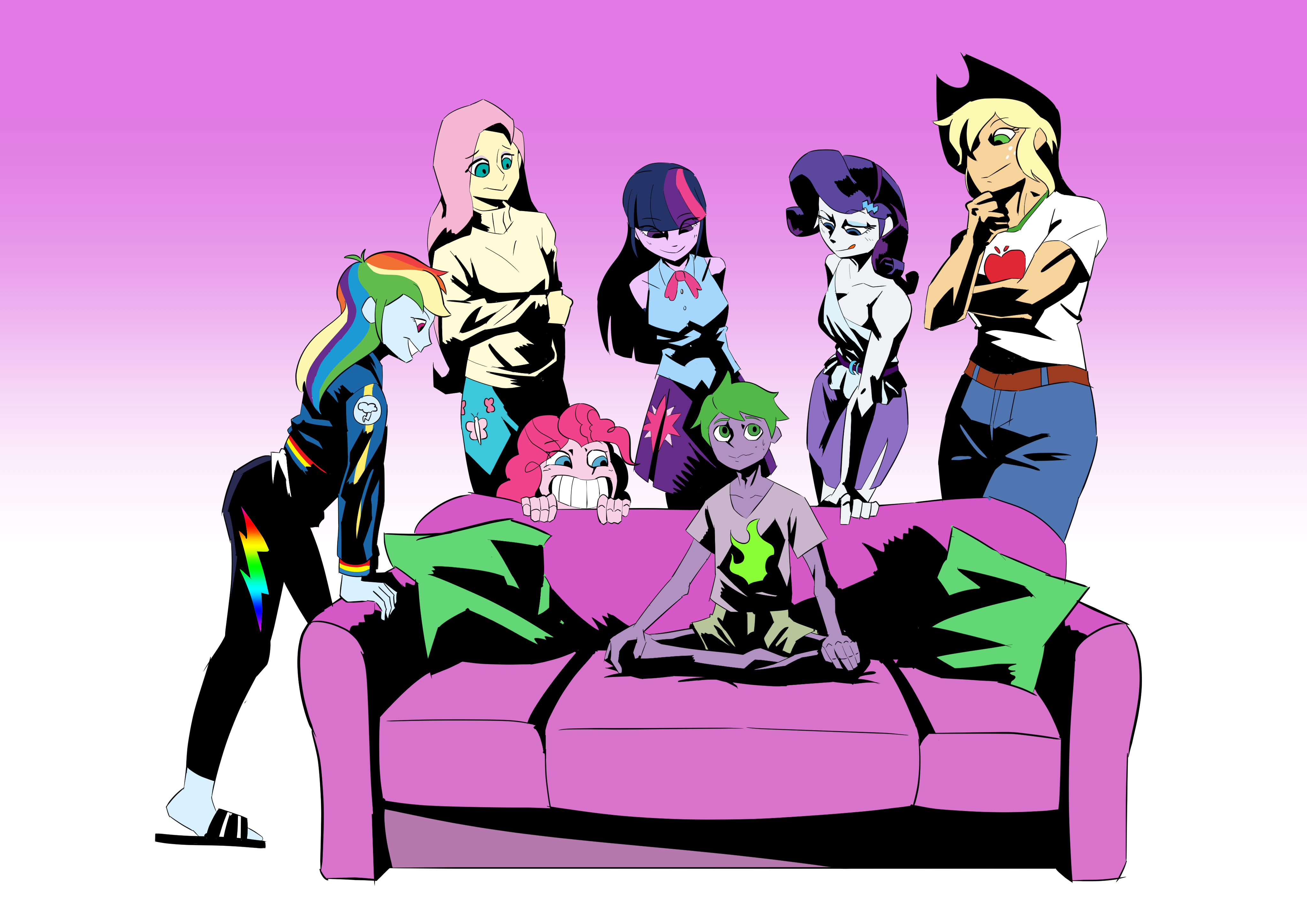 >Spike: "No need. How much?">AJ: "Sugarcube, your divine hands can have my body later if you want, but you know what I want the money for and I doubt you have en- is that blank cheque with the Princess' signature?">Spike: "She gave it to me for the gala. What you thought it was who Twi adopted me? Or did you assume I'm a pet?">AJ: "Heh, you hear that Rarity, you had a prince all that time. Dea- OoOoOoh!">Spike: "Can we negotiate a bit though? Got any 2 on 1 offer?">AJ: "Oooh... Clop that snob-filled gala, deal!"