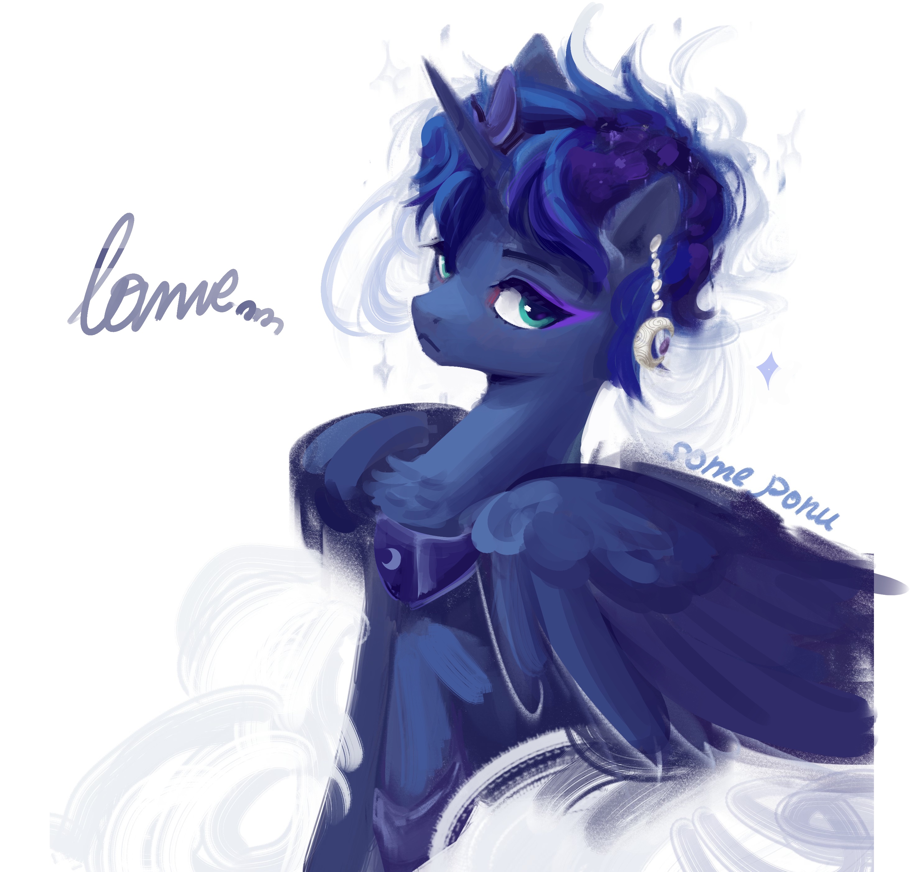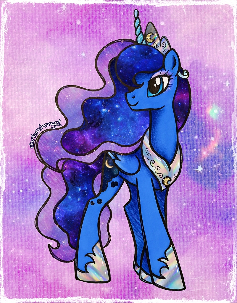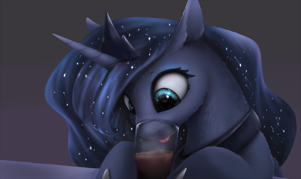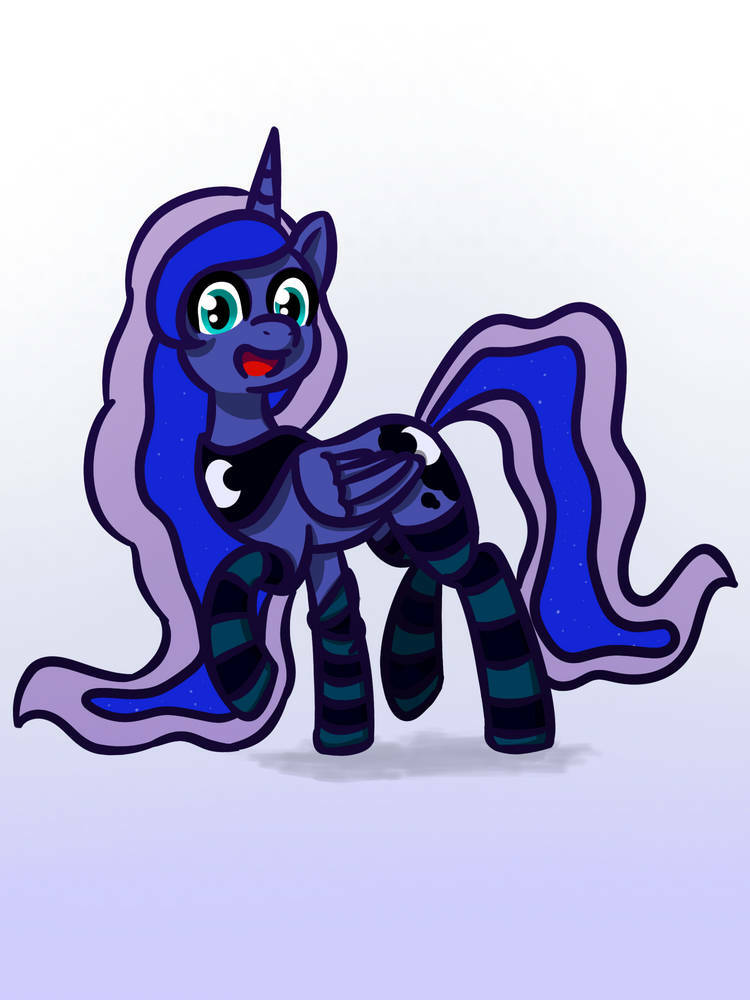 Luna with cartoon proportions and aesthetics (g4 movie 3D if you like), but she has anatomically correct horse mouth/lips and teeth.Do you?