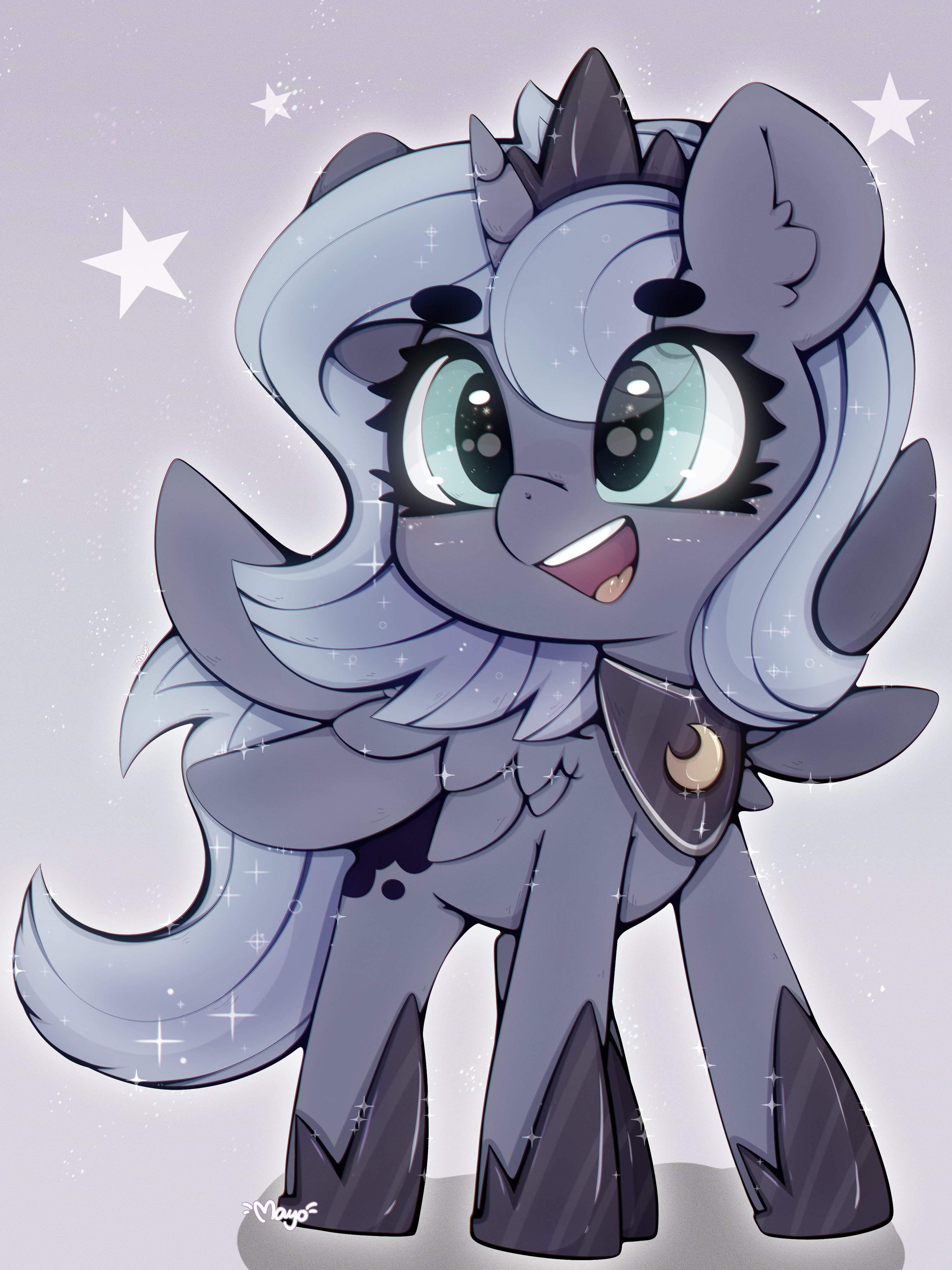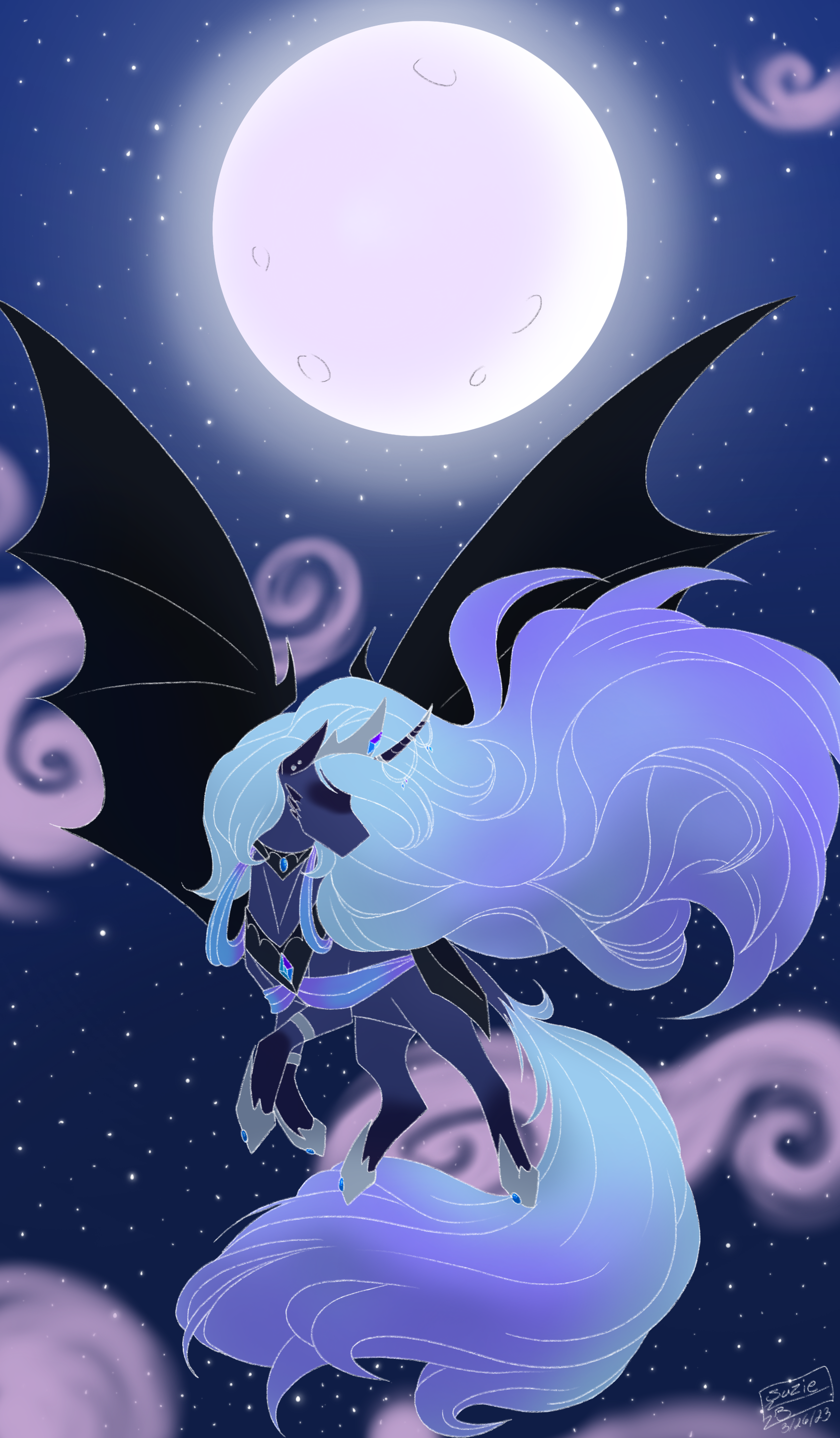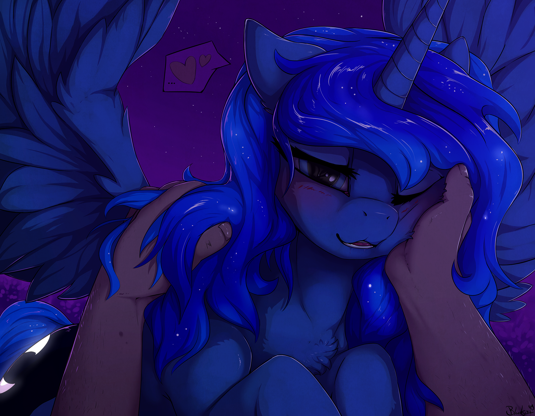 Luna with cartoon proportions and aesthetics (g4 movie 3D if you like), but she has anatomically correct horse mouth/lips and teeth.Do you?