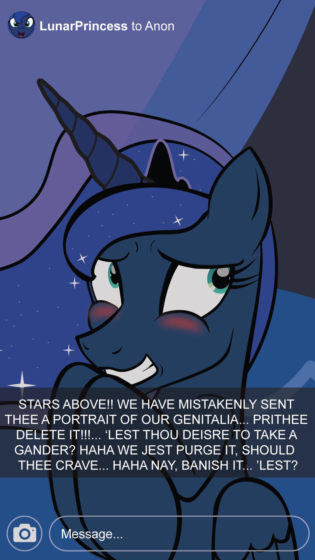 >>43024451Oh man I sure hope Princess Luna doesn't make me cum inside her pussy oh noooo haha that would just be awful!