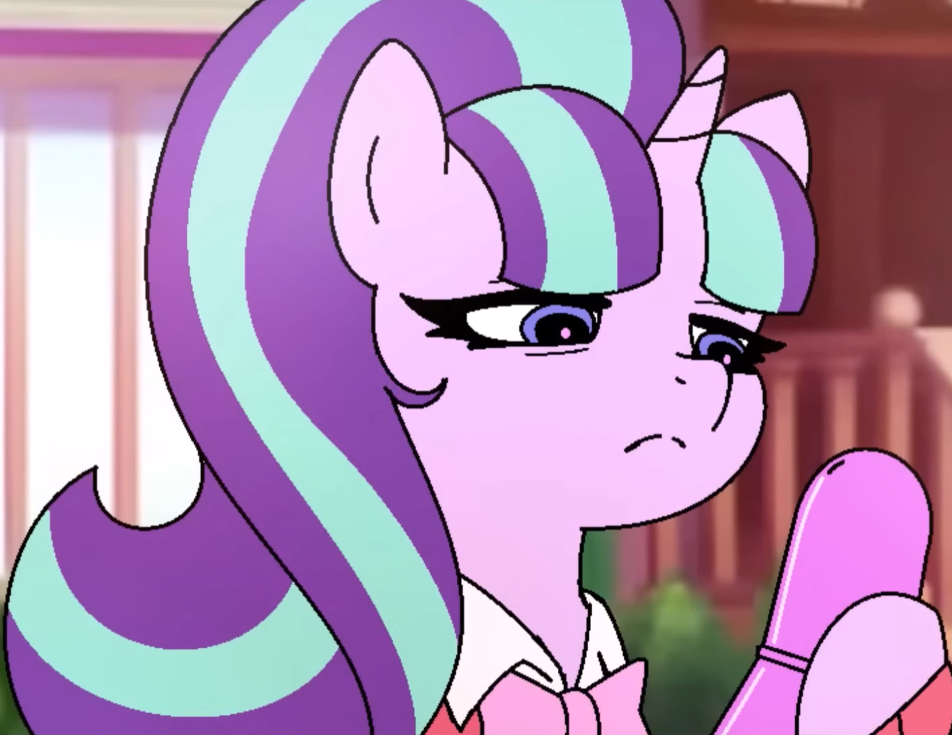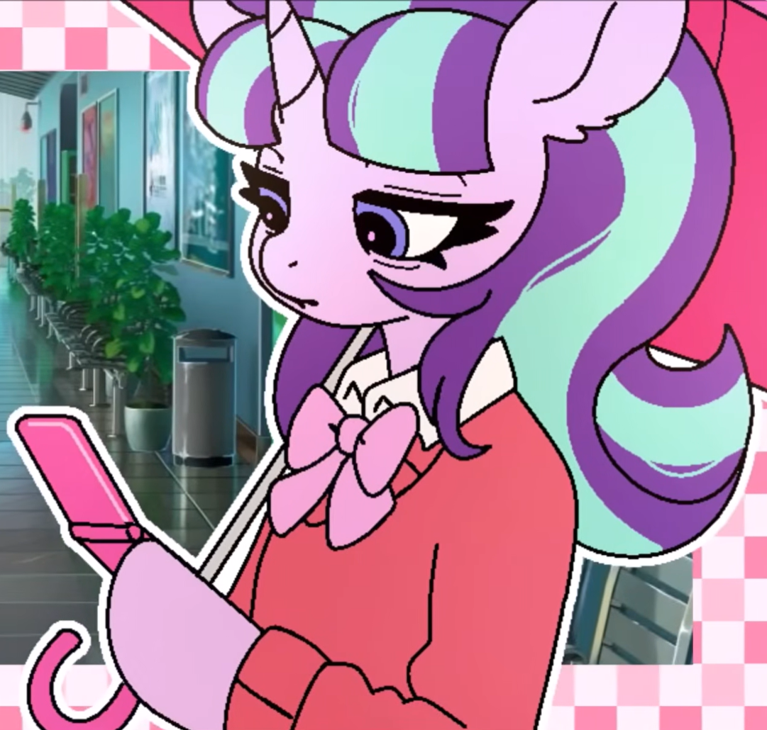 Do you think [hagmare] Glimmy uses outdated slang to appear hip to the younger generation or would she try to keep up with zoomie lingo? Maybe both after fillies start making fun of her for using boomer language then she tries to figure out what 67 means to relate to the kids. Sounds like a fun episode plot already. She basically lived off-grid for a time while being mentally stuck in the past so she's playing catch-up with society either way.