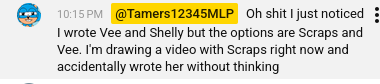 >>43016533I think it would be funny for Mari to acknowledge it. Since she's the only one that has been breaking the 4th wall on the mare timeline.