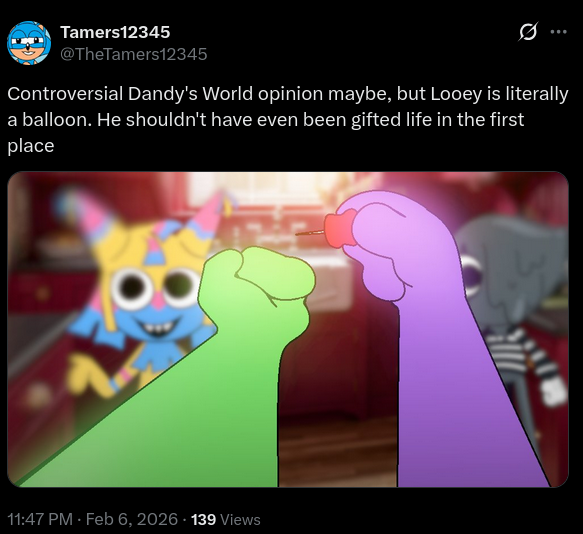>>43017043if next week's gonna be dandy's world again, kicking the hornet's nest now seems like a good move. by next friday, everyone will understand that having an opinion on this tamers12345 guy is the most important thing in the world right now.