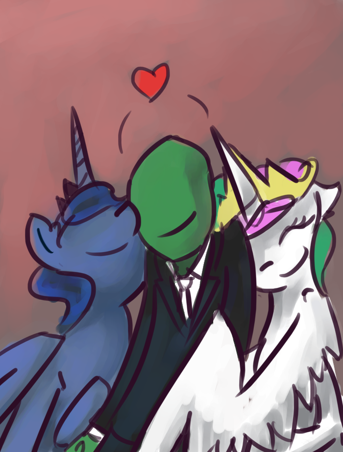 >>43028326-Celestia PoV->By the stars you're nervous.>This blasted dress had more fabric on it than all the drapes in the castle combined."Luna, do I -really- have to wear this?">Your sister spins around in a chair behind you. "Of course, sister! Don't you want to look good for your wedding?">You magic a brush over to you and run it through your hair. That ought to help take your mind off how easy it would be to trip in this ridiculous dress."It's a renewal of vows, Luna, I'm already married.">Luna scowls and trots over to you. "Call it what you may, but this is the ceremony in which your people FINALLY get to see you at the altar! Like it or not this is your wedding, Celestia!">You groan."I still don't see why I need all this...I got married the first time without a dress just fine.">Luna rolls her eyes. "Because father came to this wedding only after much persuading by mother, I can't imagine how he'd react if he saw you without a dress.""It'd at least be entertaining...">"Tch. Now you sound like your husband.">You grin as you finish combing your mane. "Perhaps I shall endeavor to do that more, then!">Luna titters. "I doubt the kingdom would survive two of him."You have that right, sister...">A silent moment passes between the two of you.>"Are you nervous?" Luna asks.>You sigh and flare a wing. "Only that this dress will catch on every possible snare on the way down the aisle.">Luna trots to the door giggling. "Have faith, sister. I'm going to go prepare to conduct the ceremony, but I'll see you soon!">With that, Luna's out the door.>You look yourself over in the mirror and force a smile.>...You needed to get out.>You magic open the door to your room and call out. "Cadence, are you out there?">"I am Aunt Celestia! Do you need something?" comes a response."No! Just...letting you know that I'm going to go stretch my legs for a bit!">That would calm you down.