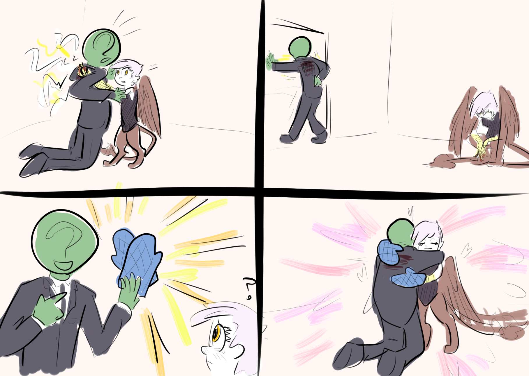>>43061614I headcanon that anon, coming from a higher plane of existence, is immune to magic. Even high tier stuff like Discord only affect him for a limited time, if hit with a transformation spell or something he'd revert in a few seconds. This only works for things that directly affect him though, he has zero resistance over his environment being changed. He also has super strength and enhanced durability. That's moreso used as an equalizer and to make the fights I dream up in my head more interesting and believable though. Don't want him to be an op mary sue or a pushover. I thought about making some kind of "anti-magic" that's effective against him. I also think having him be able to grow a horn or wings in certain environments would be cool but that's meant to be a different continuity.