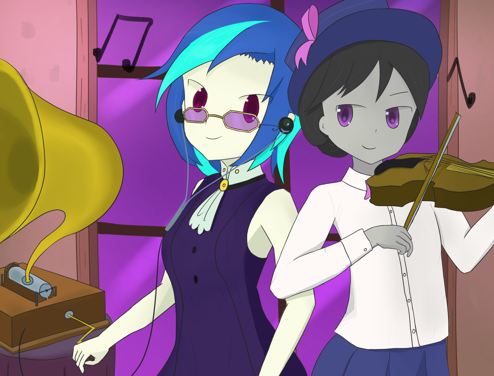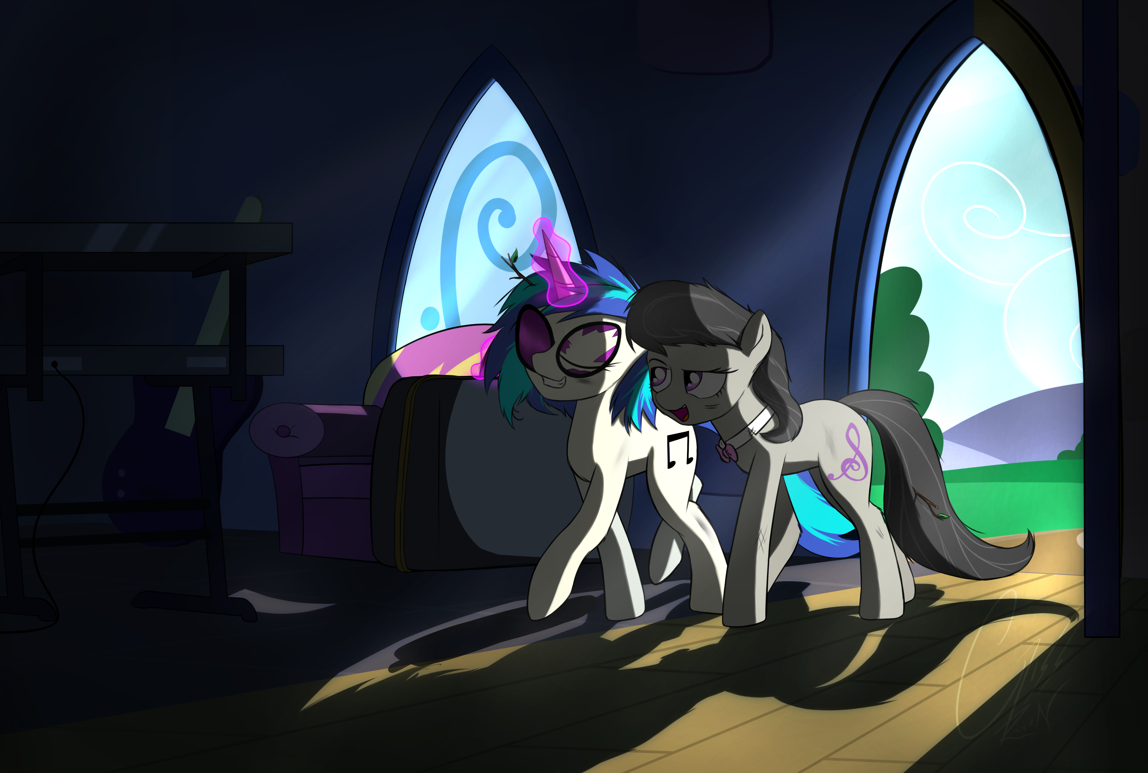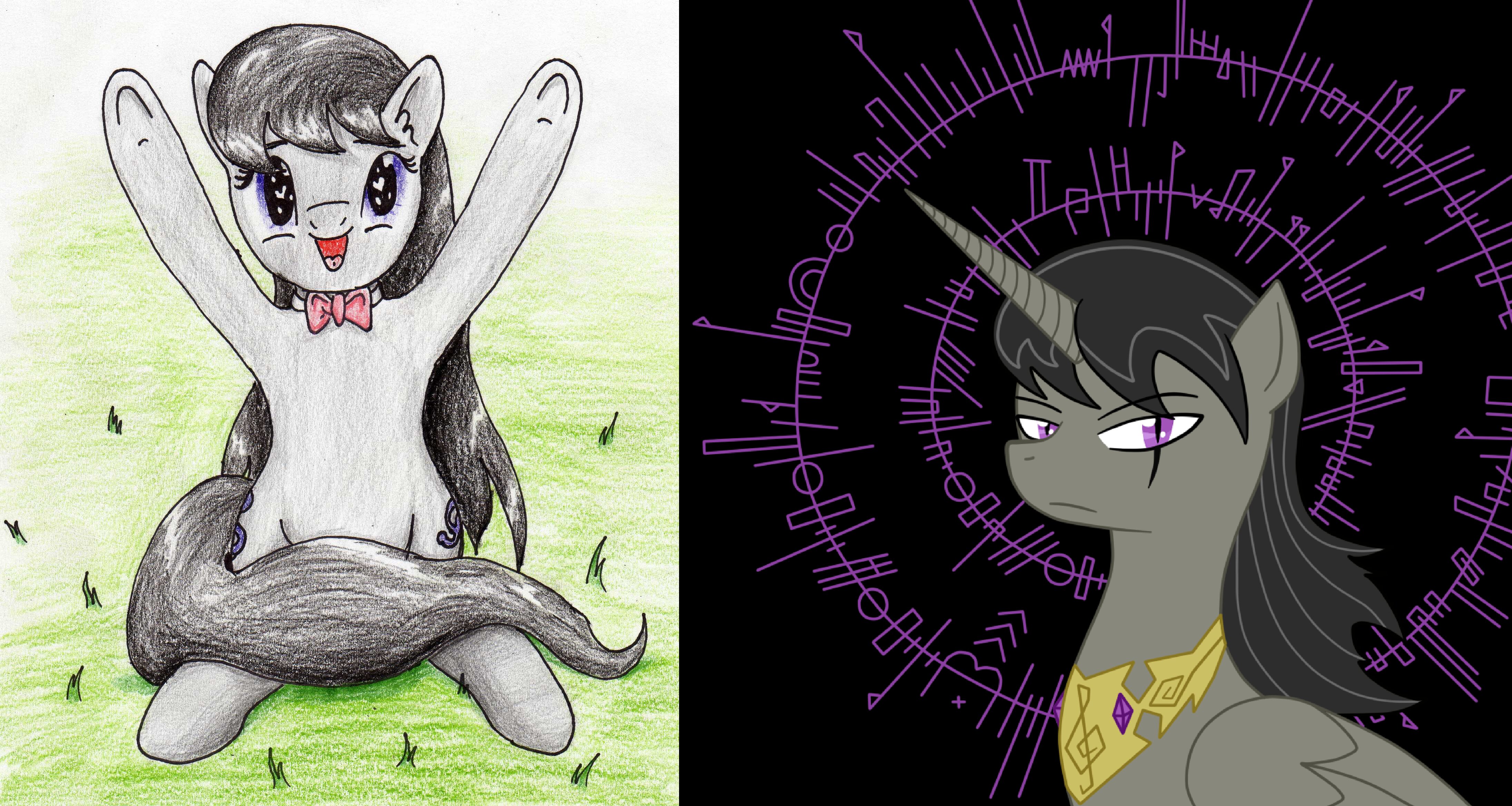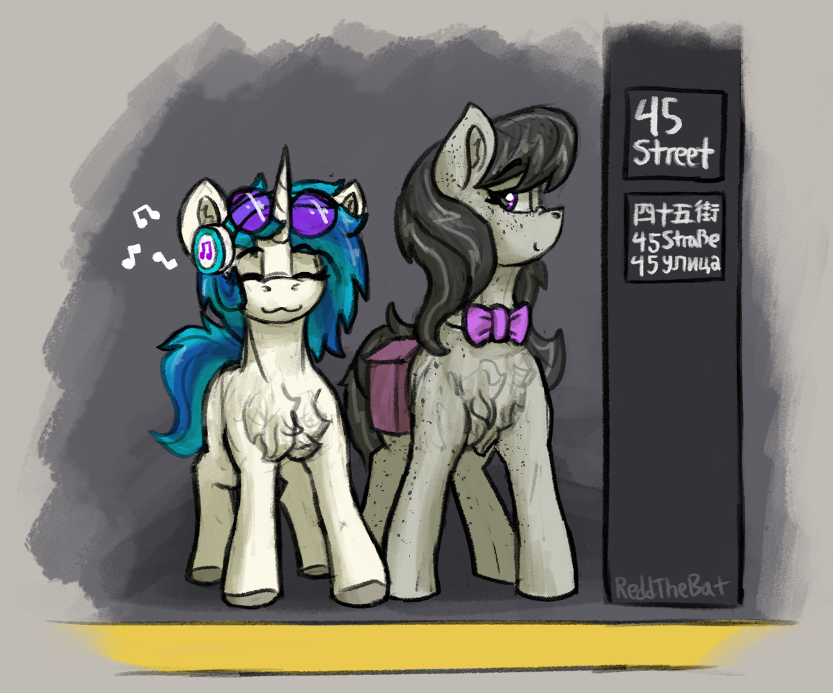 >>43033421Threw something together. First green, don't kill me"The daughter of Beautiful Aria and *THE* Crescendo???">Octavia slams the door and paces back and forth in her new dorm room. Her cello looks on from its stand.>Two of the most famous vocalists of the past 20 years is a high pedigree to match.>Nothing like her own, coming from a line of modestly successful but otherwise unknown strings players.>Octavia pauses and looks at the empty bed across the room."Oh Celestia, this could be my big break! I must make a good first impression!">A frantic half-hour of organizing, rearranging, cleaning, and frazzled hair is interruoted by a knock on the door."Coming!">Octavia smooths down her mane and straightens her bow tie in the floor-length mirror before she trots to the door."Good morning Miss-...">She's interrupted by the most violently loud shock of blue hair she's ever seen. Purple sunglasses gleam in the sunlight of the open quad almost as brightly as the smile on the pony in front of her.>Part of the sunlight is blocked by what appears to be a little red wagon straining to contain a tower of speakers, turntables, and records.>How all of that is going to fit inside the small room makes Octavia gulp."I-I'm sorry... Who are you?">The blue mane swishes around as the pony brings up a student ID that says "Vinyl Scratch" in crude permanent marker.>The original name, Adagio Concerto, is marked out.>Octavia looks blankly between the card and the pony before her."There's no way you're her. I'm sorry, but you seem to have the wrong room.">Purple sunglasses reflect a beam of light across Octavia's face as the pony shakes her head.>She points between the picture on the card and herself, pointing out the obvious match.>Octavia stands stunned as the pony drags the wagon inside, somehow getting everything through the door without breaking."Oh, you must be our little Adagio's room mate!">Octavia pivots slackjawed towards the approaching voice.>Holy_shit.jpg>Two extraordinarily put together ponies trot up to the room. Their aura preceeds them, washing over Octavia like a tidal wave."You-you're...">The mare laughs melodiously."Beautiful Aria, at your service.">She bows elegantly and extends a hoof to the stallion beside her who nods."And this is my husband Crescendo! You must be Octavia. We were so happy to hear you were going to be rooming with Adagio! Your parents played for both of us many times over the years.">Before Octavia could respond, a subtle thumping of kick drums begins to pulsate from the open door."Oh, sounds like she's all set up. Octavia, please take care of her, she has a hard time making friends on the account of... well... Please don't give her a hard time about her voice.">The two ponies brush past Octavia as they pass through the door.Fucking character limit. I'll post more in a while.