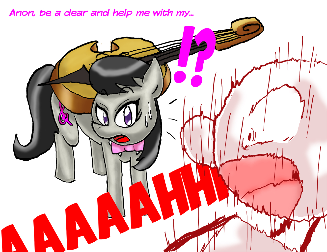 >Be Anon>You've been practicing for 6 hours straight without a break on the cello Octavia so graciously lent you so you could get to her level of expertise>You're exhausted, especially since you've only had 4 hours of sleep>But you know better than to slack off and diminish your potential like a "grimy, overly spoiled ape" as Octavia put it>The scars all over your body from the last few weeks speak for themselves>Despite this, you suddenly realize that your eyes are half-shut and you're having a hard time holding the bow >Gravity feels like it's gotten significantly stronger>Maybe just a quick little nap. It never hurt anyone, right? It's not like Octavia is listening non-stop like a robot, she probably won't notice>You stop playing and begin slowly closing your eyes, feeling content with the thought of finally getting the rest you deserve for working so hard>You jerk up and let out a yelp as the door suddenly slams open, turning your expression from shock to utmost horror as you lay your eyes upon a lividly glaring Octavia (pic related)>You open your mouth to say something but your intense fear delays you for a few seconds before Octavia speaks first>"You lazy, ungrateful piece of rubbish!">She starts cantering over to you, triggering your survival instinct to make a last-ditch effort to explain yourself"O-Octavia w-wait, listen I swear I was just- AUGH!"*THUD*>You fall from your stool onto the cold floor after Octavia slams her hoof against your face>She rarely hits you this hard so you know you made her really mad>Before you can even look back at her, she strikes you in the face again, breaking your nose>Octavia is incredibly strong, especially for a mare and short-tempered, you don't dare to even touch her when she's beating you>Instead you look away and use your arms to shield your head, curling up into a defensive fetal position and hoping Octavia doesn't grab something sharp in response>You feel as though your kidney has ruptured after Octavia turns around and bucks the right side of your abdomen, making you groan in pain>You immediately put your hand where it hurts most before Octavia crashes her forehoof into your face again, this time getting on top of you and making it harder to for you to protect your head>She begins repeatedly hitting you in the face and head, letting out enraged grunts with each swing of her hooves>You lay there and take it, having lost count of how many times she struck you until she finally stops, huffing and puffing before letting out a final sigh and getting off of you>Your face is completely coated in your own blood and you can only make gurgling and choking sounds as Octavia looks at her hoof and makes a disgusted sound at the sight of all the red liquid>She steadily and terrifyingly calmly trots out of the room and begins washing her hooves before returning to you>"Get up, filth." She says in a loathing tone as you are unable to mutter a response without coughing up more blood