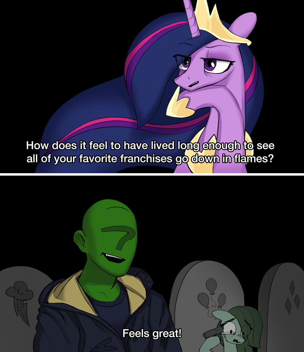 I've noticed that the current, non-/mlp/ adjacent fandom only makes the same mediocre played out crap over and over. It's all jokes about yuri, shipping, the same tired subpar fanon/headcanons, bad redesigns, and humanizations played out ad nauseam with no originality. I know this apparentally all typical content that all fandoms engage in but I've never held any interest for any of it. I also noticed that anyone with seemingly any actual skill, taking on bigger projects, or is related to /mlp/ in any way makes none of this kind of content and it tends to be better.Of course, that isn't to say /mlp/ doesn't have it's own content that gets repeated forever nor is it the pinnacle of quality but a lot of the fandom and younger fans enjoyment of ponies feels much shallower, as if they're just purposelessly making/copying stuff to use as a personality or aesthetic. Just following the crowd, just to be a part of something. Whereas on /mlp/ there is a much closer emotional connection to the ponies here, things are made with intent and love. Obviously the entire fandom isn't like this but I see it enough to notice it. Thoughts? Am I wrong?