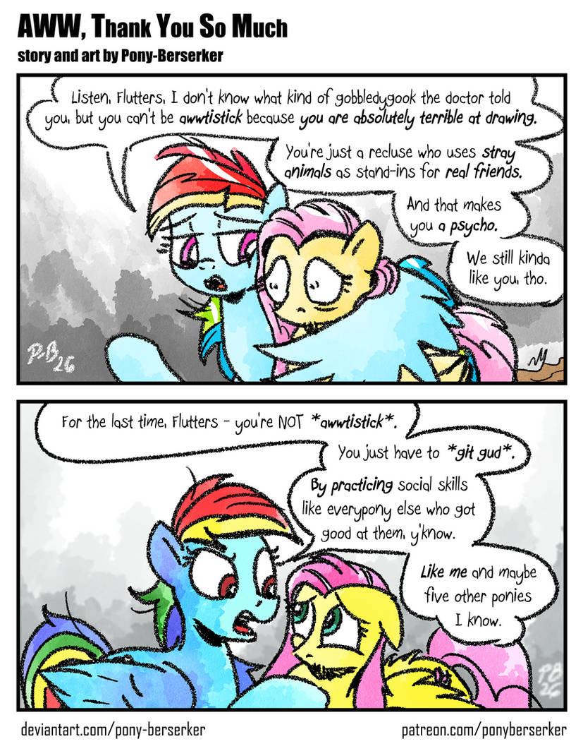 >>43031543I really cant stand this artist. all of his jokes are the ponies being mean to each other, dash being a right wing conspiracy theorist, ponies taking advantage of each other, or just otherwise being mean-spirited. it's like the polar opposite of the show but not in an interesting or fun way like the violent/edgy stuff of the early days was.took me a while to find an image of his I actually liked
