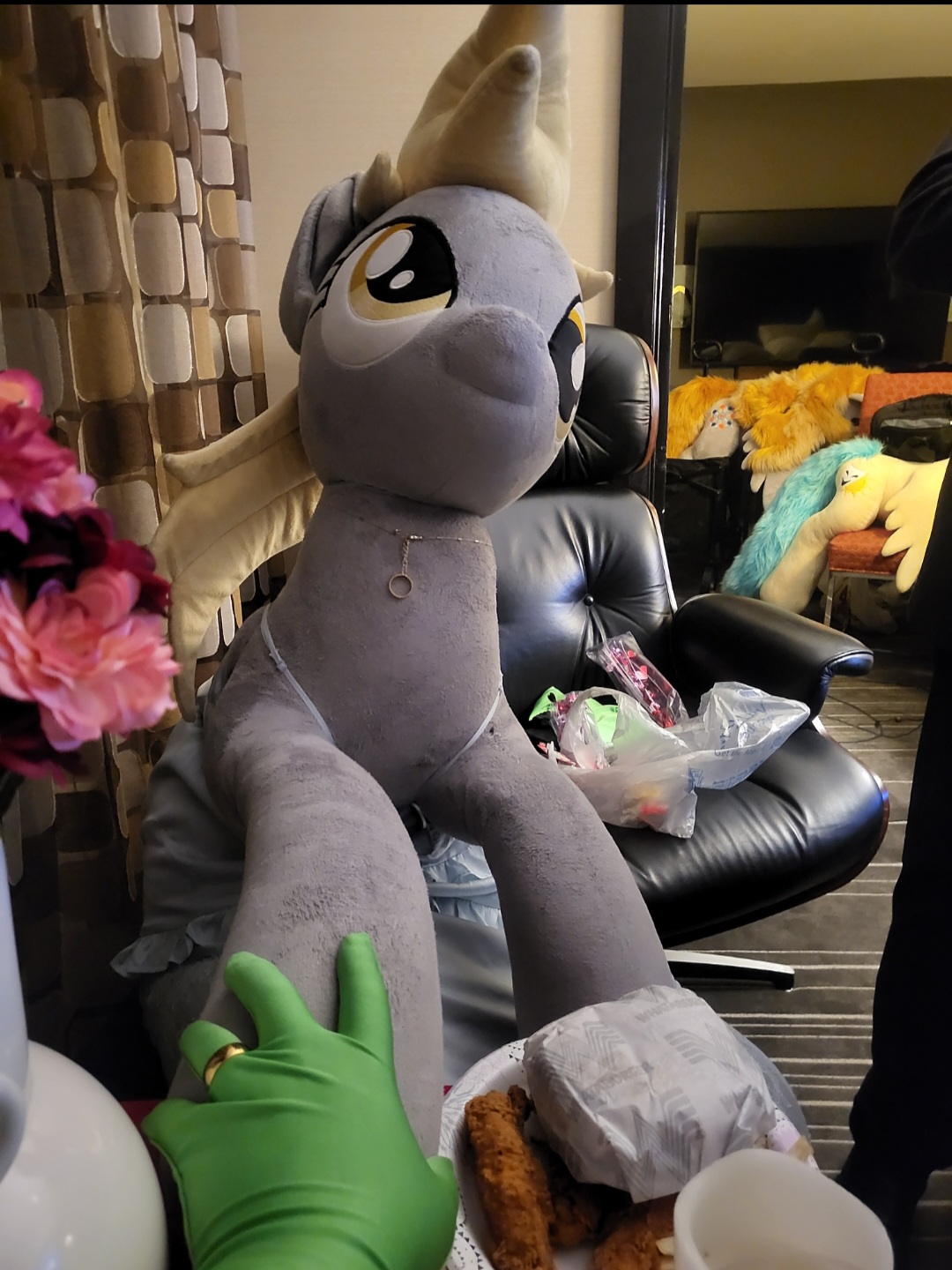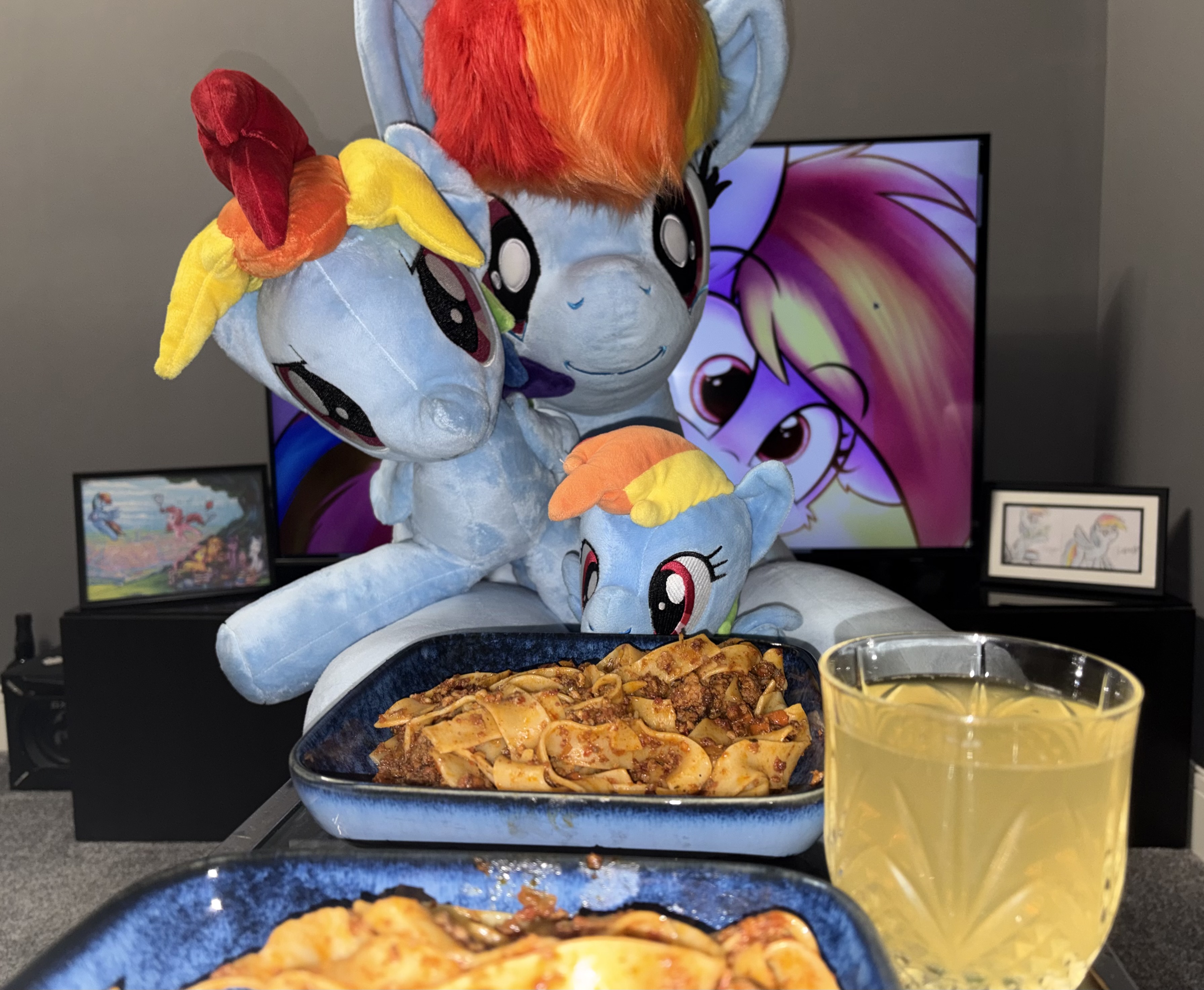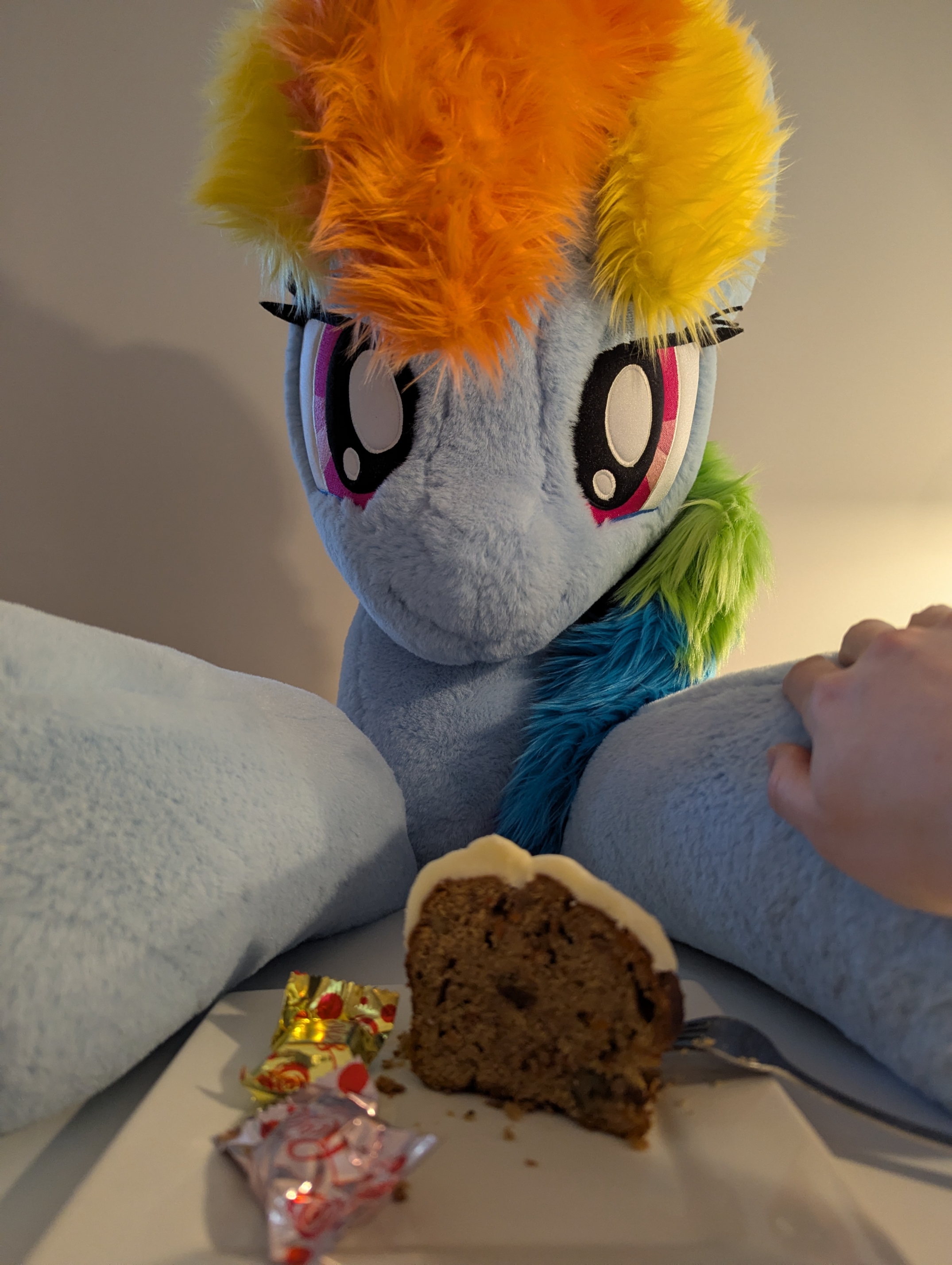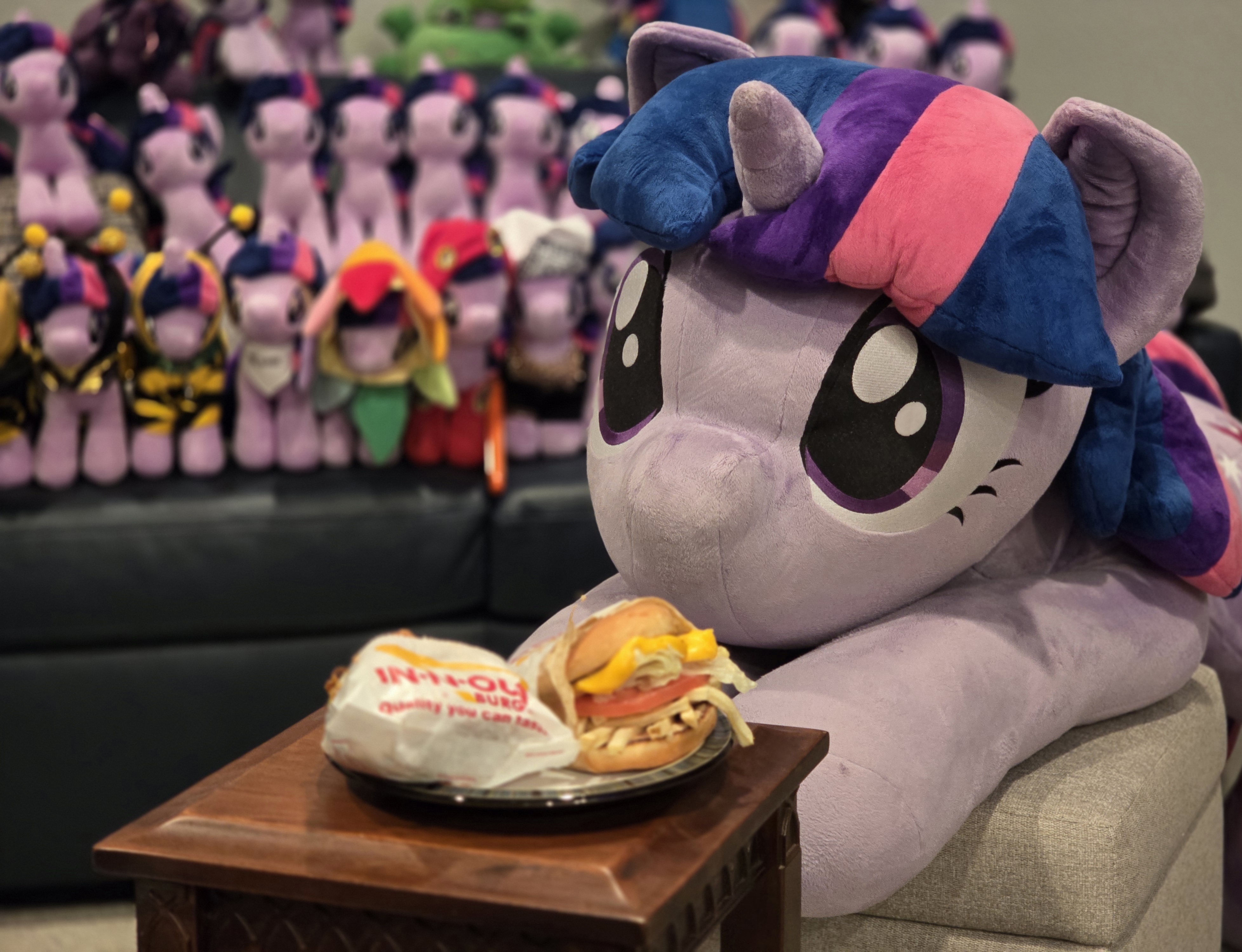 That is one BIG Rainbow Dash plushie near the bottom left. That's like, fursuit size. You could fit a person in there.