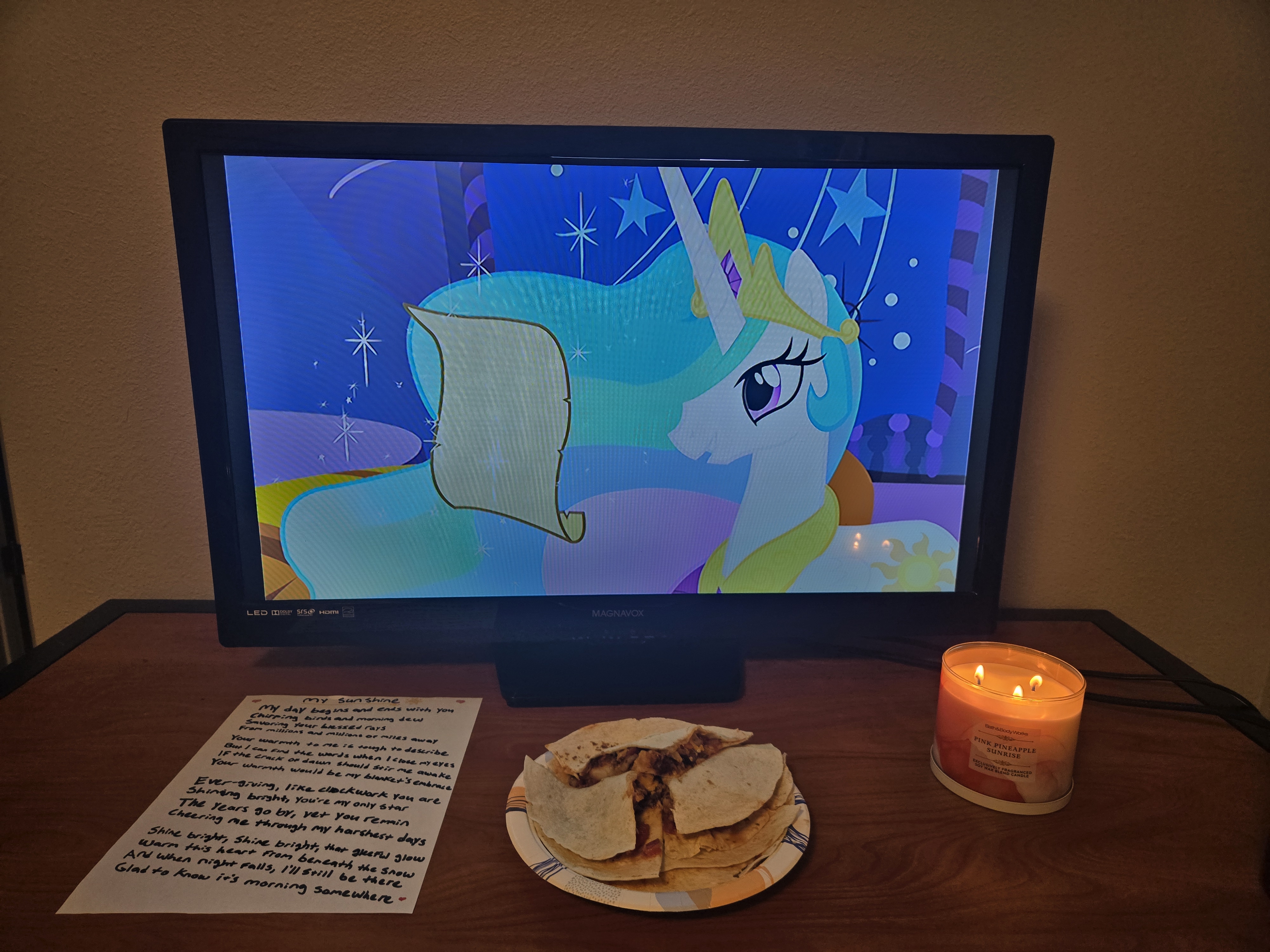 Lot of my own personal sentiments here, yeah, but I do think /mlp/ would get a kick out of celebrating it. Maybe I'll make a thread when the decorations go up on /v/ in a handful of days.