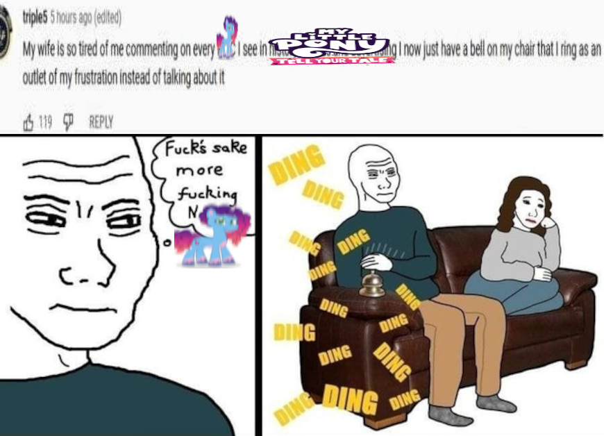 >>43050210M*styschizo, this is your mindset.https://desuarchive.org/mlp/thread/42452055/#42475069All of your opinions and headcanons are invalidated.