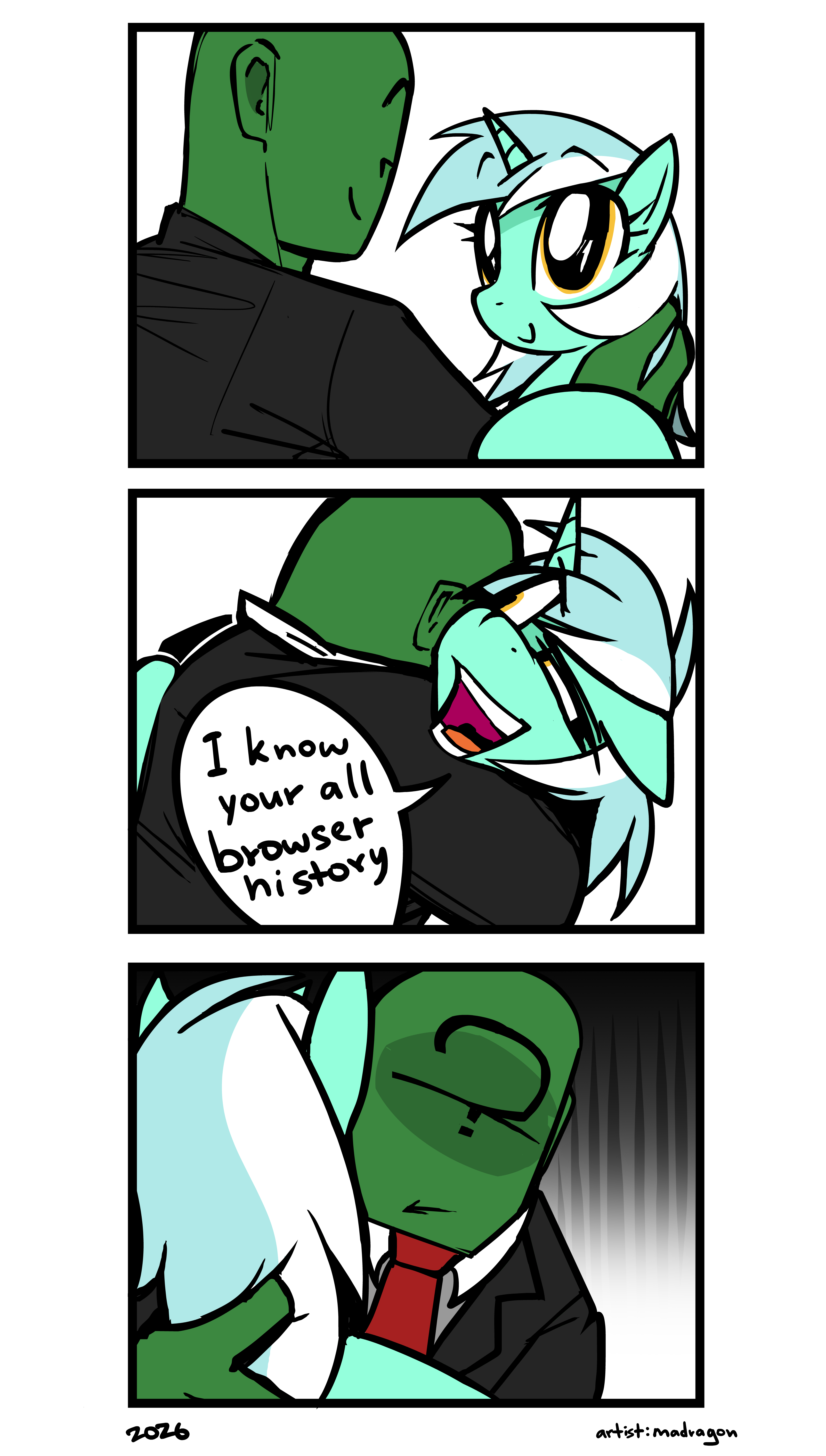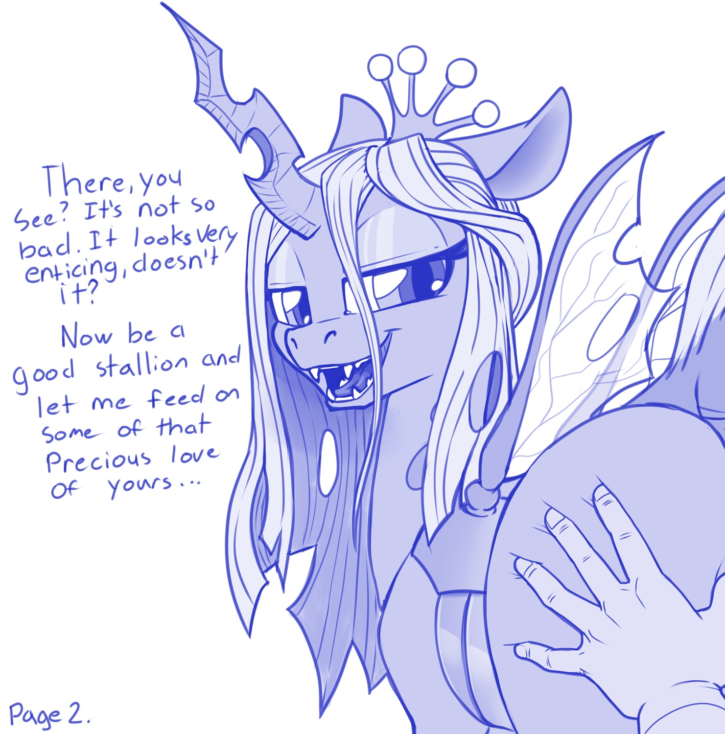 >"The previous one died early?">"Oh of course it did.">"No surprise, honestly.">"Imagine how quickly I could break you~.">"Ohhh yesss, break you in for my use, make you my little love battery...">"Think of it, Anonymous.">"You'd never have to deal with those pesky ponies again!"