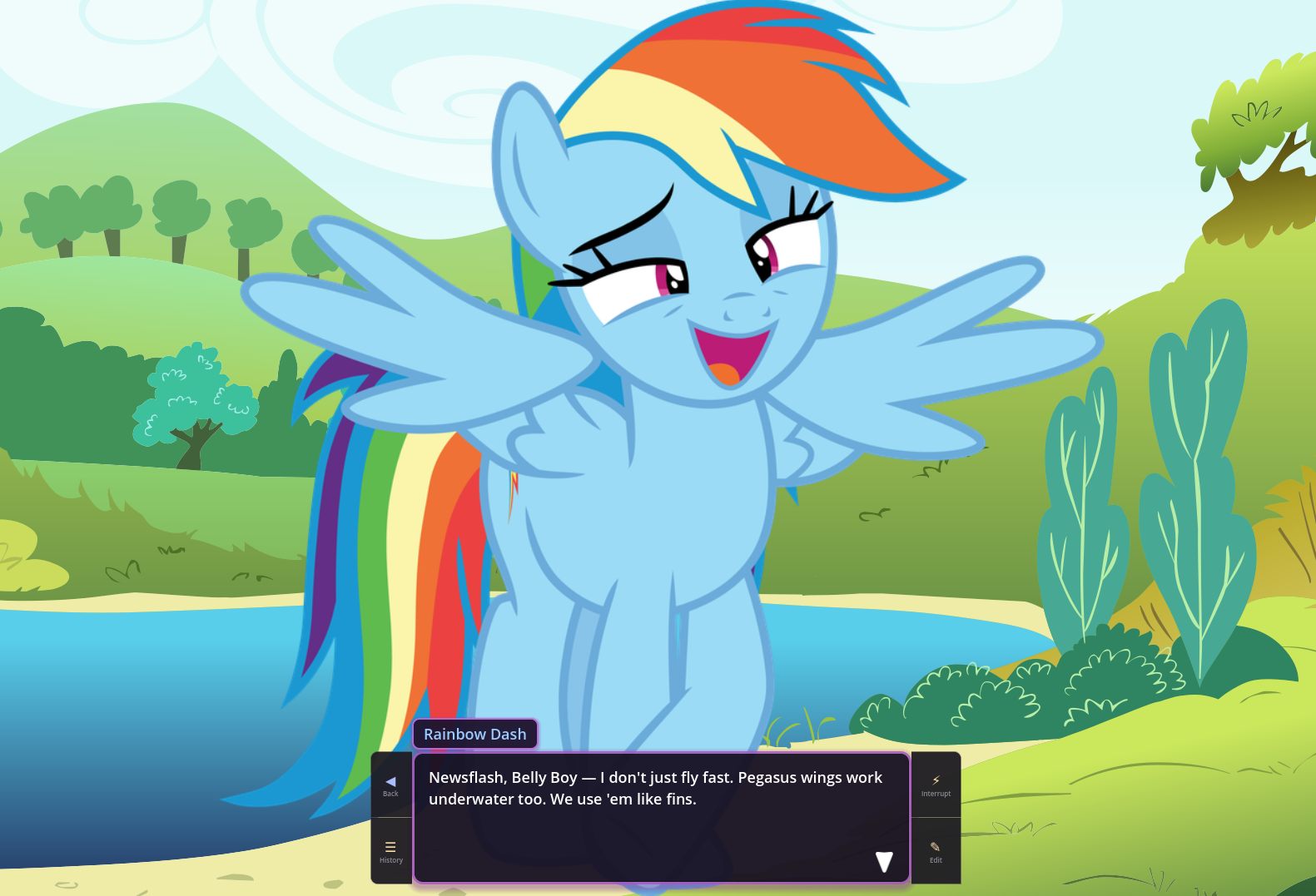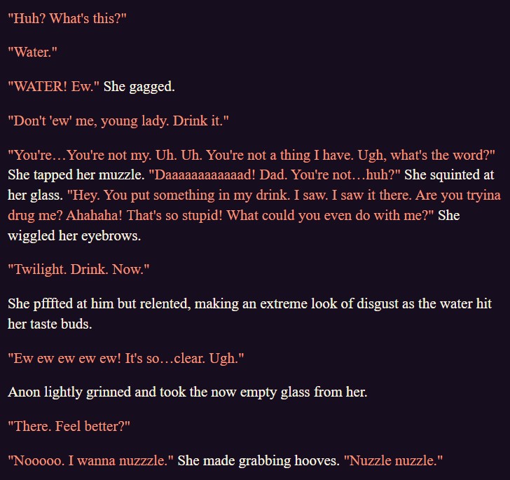 >>43051940Fuck! AI Twilight refuses to listen... Even when it's explicitly written down that she shouldn't spout scientific nonsense 24/7, she still does it... Help.
