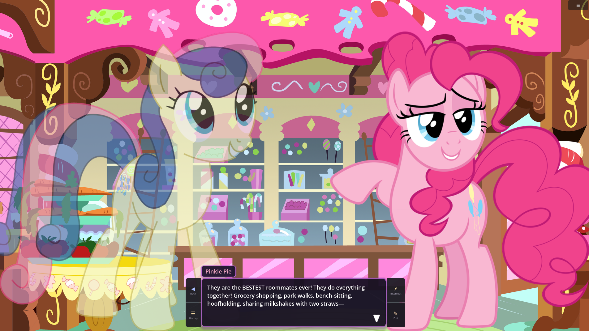 >>43068543Bonnie card where she is the cute candy shop mare who loves you