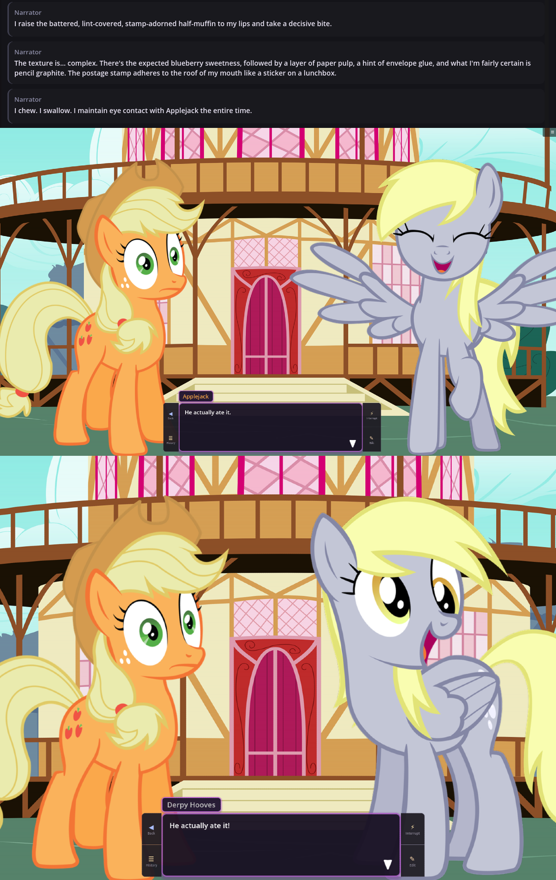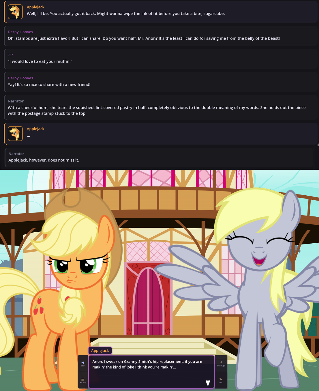 VN logs 2:Happy Pone >>43046470Cute Trixie >>43047101Lot of Mares >>43047530