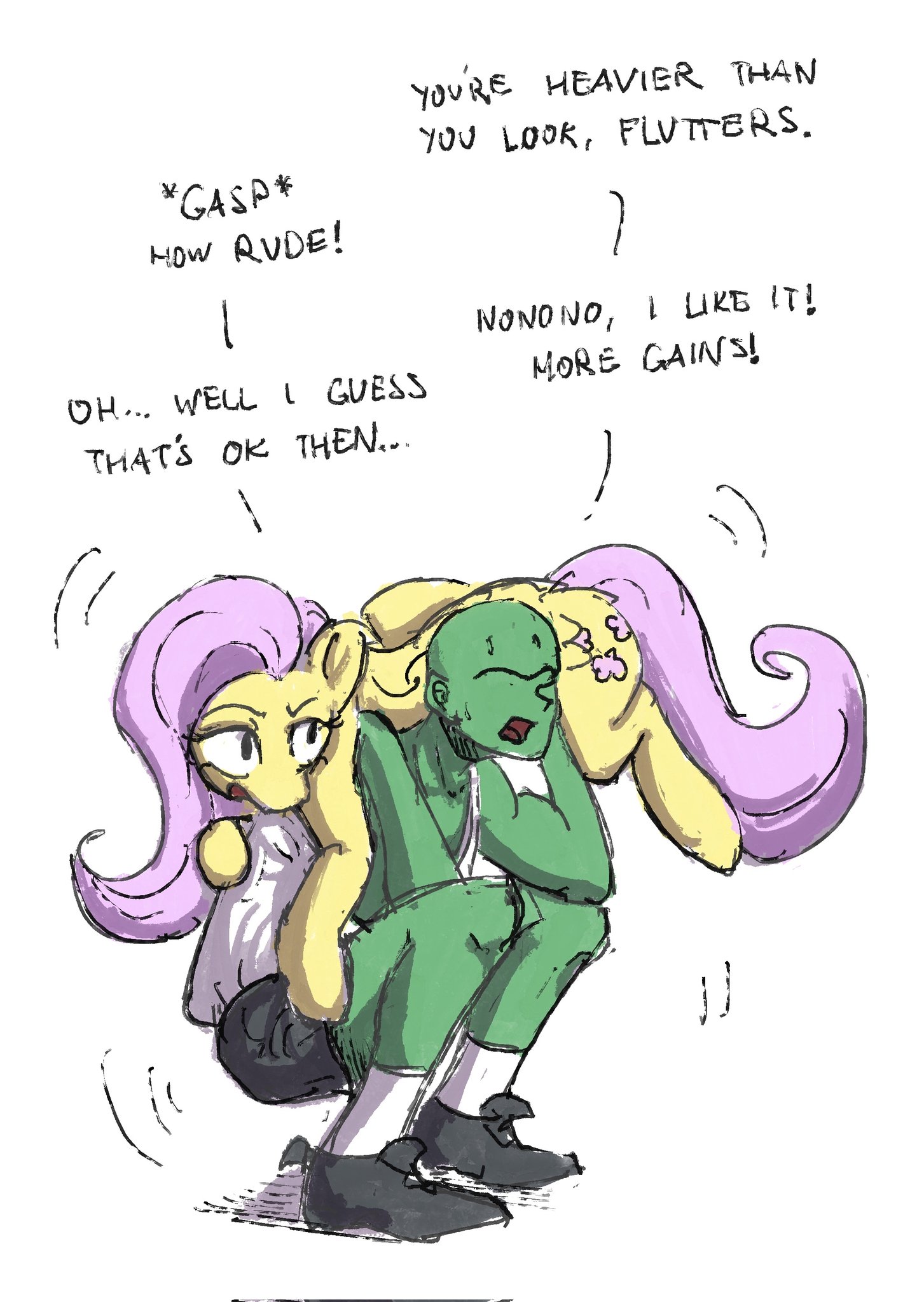 >>43100353Fluttershy is very strong since she can lift bears, she has to be a little muscular