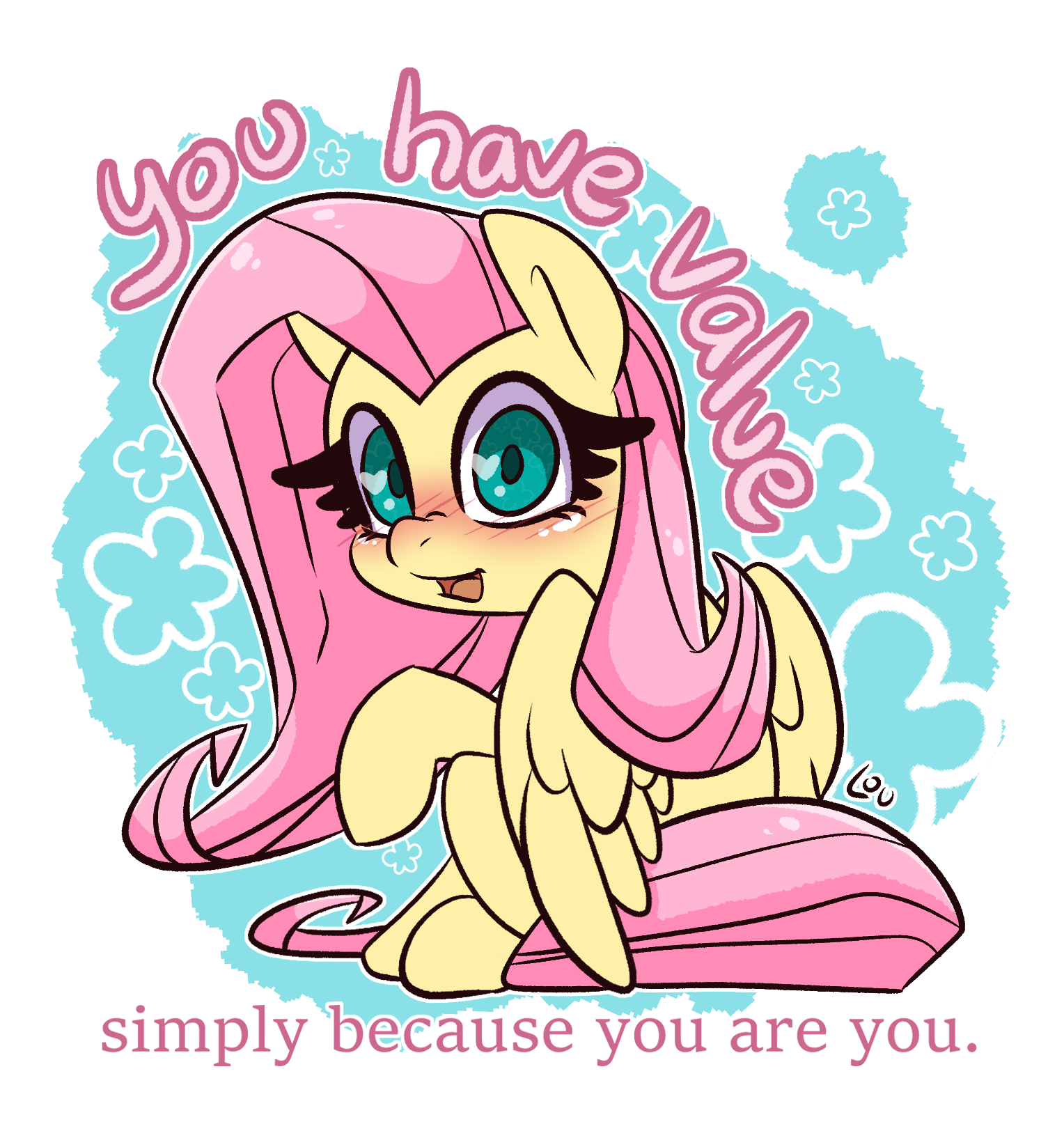 >>43060863In the beginning I just loved her for being so caring and cuddly (more so than the rest). But I've found myself a lot closer to her as of late. I've managed to tackle a lot of my anxieties over the past year and I can imagine her cheering me on, being there for me just as I would wanna be with her. Everybody deserves a little kindness and so do I. It's not always easy but I wanna keep trying and Fluttershy helps a lot.