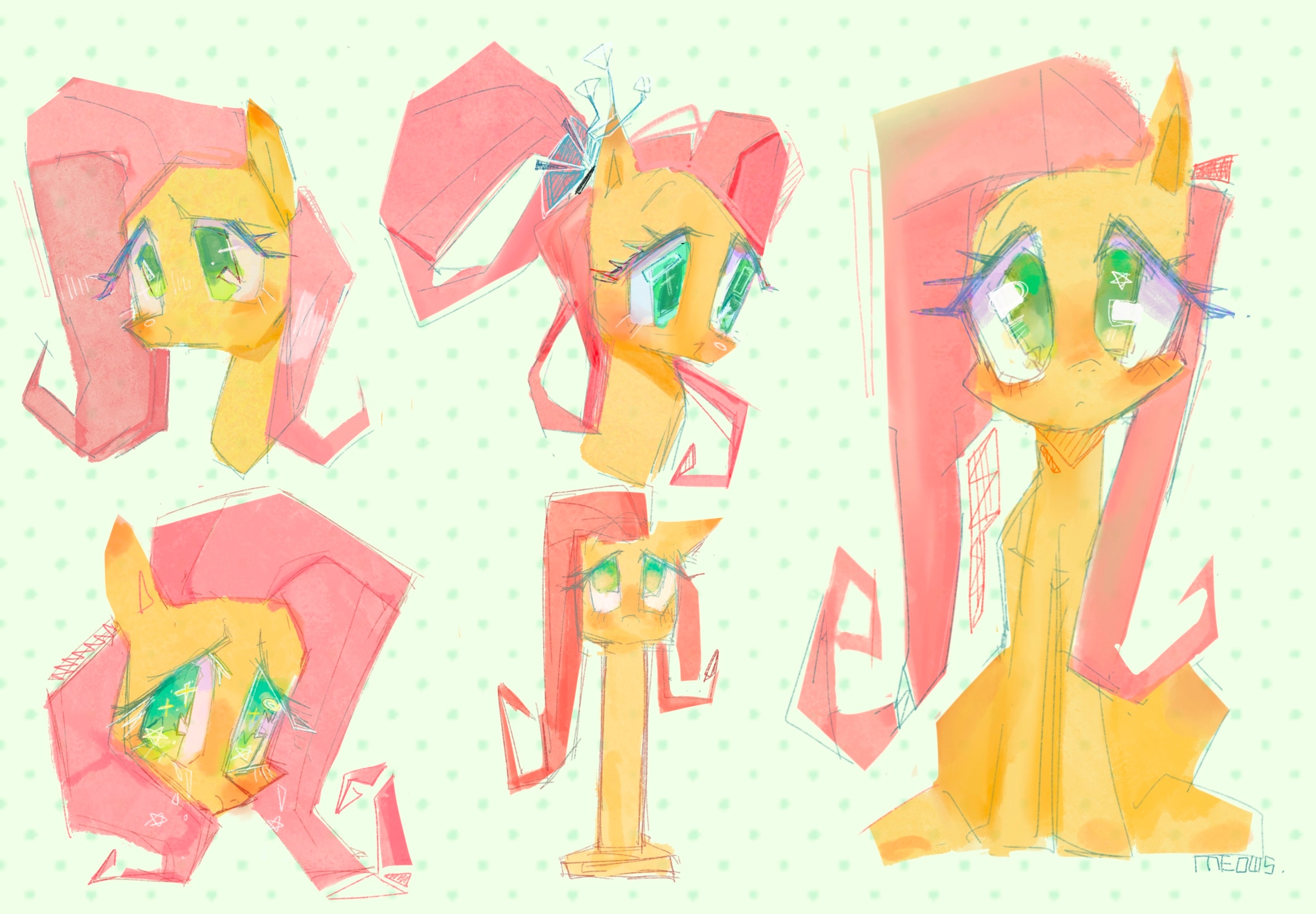 >Fluttershy's mane become spikier as she having a mental breakdown due to anger.>Pinkie's mane deflates and her color starts fading as she's having a mental breakdown due to sadness.>Twilight's mane becomes frizzled and her eyes are twitching as she's having a mental breakdown due to anxiety.Shame the rest of the Mane Six didn't get proper mental breakdown modes.