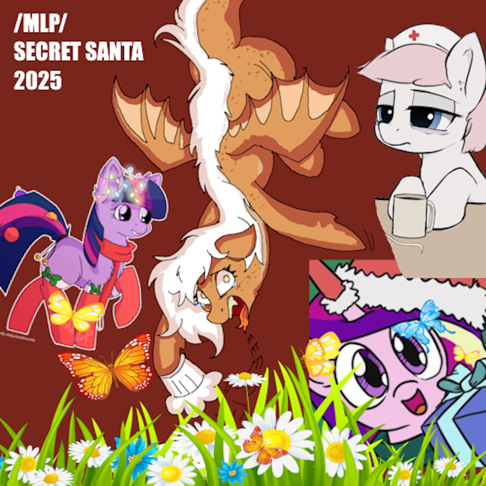 HAPPY (LATE) HEARTH'S WARMING AND MERRY (LATE) CHRISTMAS!! Ho Ho Holy smokes, my friends! It’s already been that time again! Welcome to the official /mlp/ Secret Santa 2025(6??) GET POSTING YOUR GIFTS AND CARDS thread! Celebrate Horsemas with your fellow anons; spill your horrid desires to an internet stranger, and spend ONE LAST THREAD being a little less awful than we usually are. >How’s this thing work? Read the FAQ! The short form: Gifts are given Round Robin style (A gives to B gives to C who gives to A) while cards are exchanged traditionally (whomever you give a card to should send one back to you). You will be randomly assigned anons by email after the signups are over so please keep an eye out! Sign-ups are CLOSED! Ya took too long! Latecomers' signups are CLOSED! If you're late to latecomers you really should actually post on this board Horsemas Day is CLOSED! Schedule of events and deadlines: Oct 11th-31st: Signup doc went live. Confirmation emails sent out. Oct 31st at 11:59pm CST: Signups closed. NO EXCEPTIONS. Nov 1st onwards: Gift assignments were given out. Card assignments are out too! Dec 1st - 10th is the latest suggested mailing period. Consider mailing on the early side if you’re shipping internationally. 2025 - OPEN PRESENTS! If Derpy has dropped them off 2026 - ?????????????FAQ here: https://fag.anonfilly.com/ Coordinator email for comments/concerns/general inquiries: ponyclausmlp@gmail.com (RIP) Card Ambassador and assistant dragon supreme: thecardslut@gmail.com Latecomers email: kiwilatecomers@gmail.com (address grinch rescue here for now) >ITS FUCKING MARCH REEEEEEEE Well, shit was fucked! It's Grinch rescue time, and it is the time to get hype! Share stories from years gone by; say hello to your fellow horsefuckers; talk about your plans for the year; maybe write a song or poem to pass the time while we wait for signups together. Draw some Chrimbus OC art. Run a giveaway. It’s that time of year, and we’re so happy you’re here to join us. One more big party for the new year! Let's see the event off with a bang! So long as the thread lives, it's Horsemas Season, so it's time to post those presents and cards! You wouldn't want to make your Santa sad by not posting the cool things they got you in the thread, now would you? Ghosting is not neato at all. And remember: DON'T take the bait, lurk moar, be creative, and git opening folks! You just lost the game!Previous Thread: >>42987780