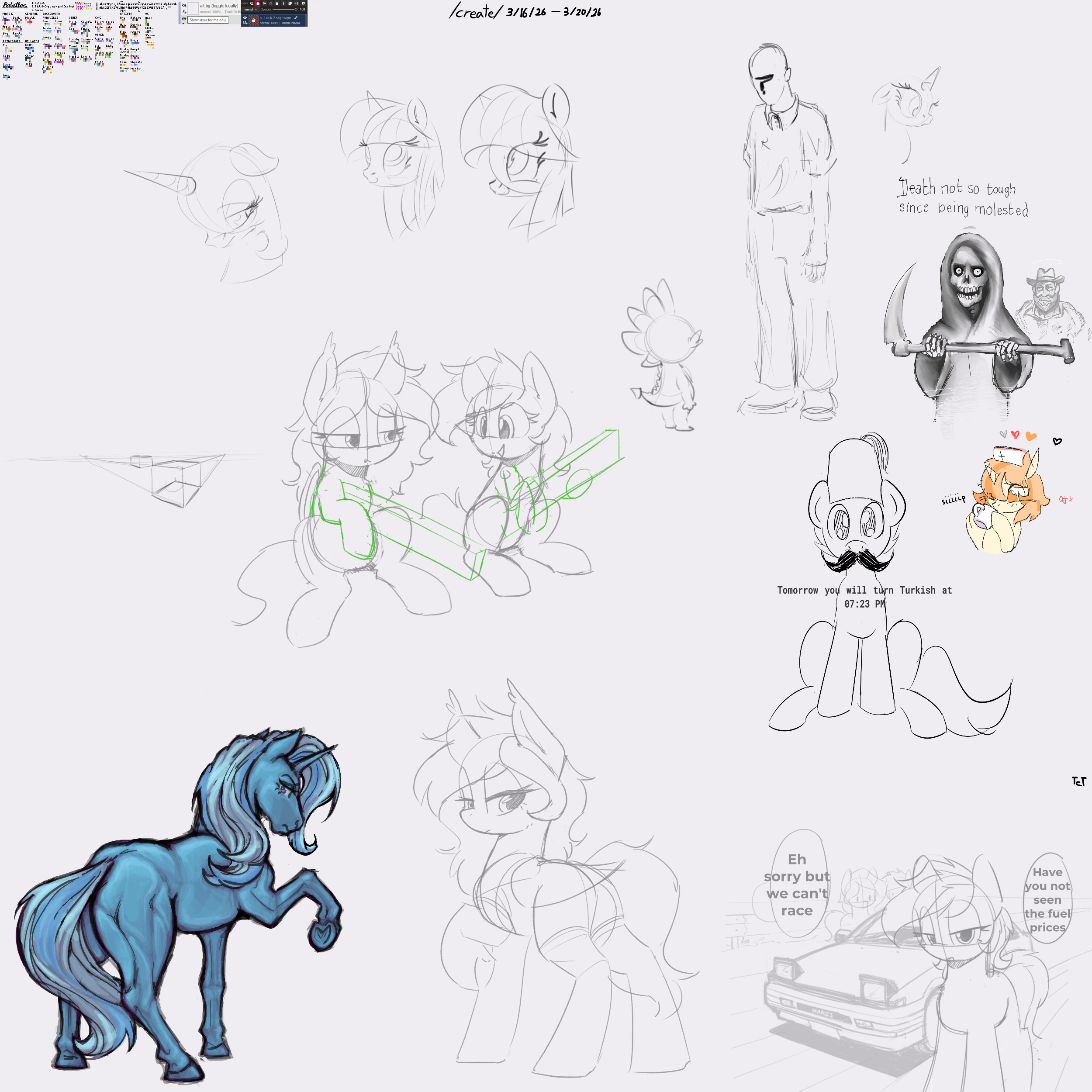 I call this one piss horse, thinking I might do a glitter piss horse today>>43077574ahh yeah I saw a big print out of a million different ponies from that last MF I think, very impressive