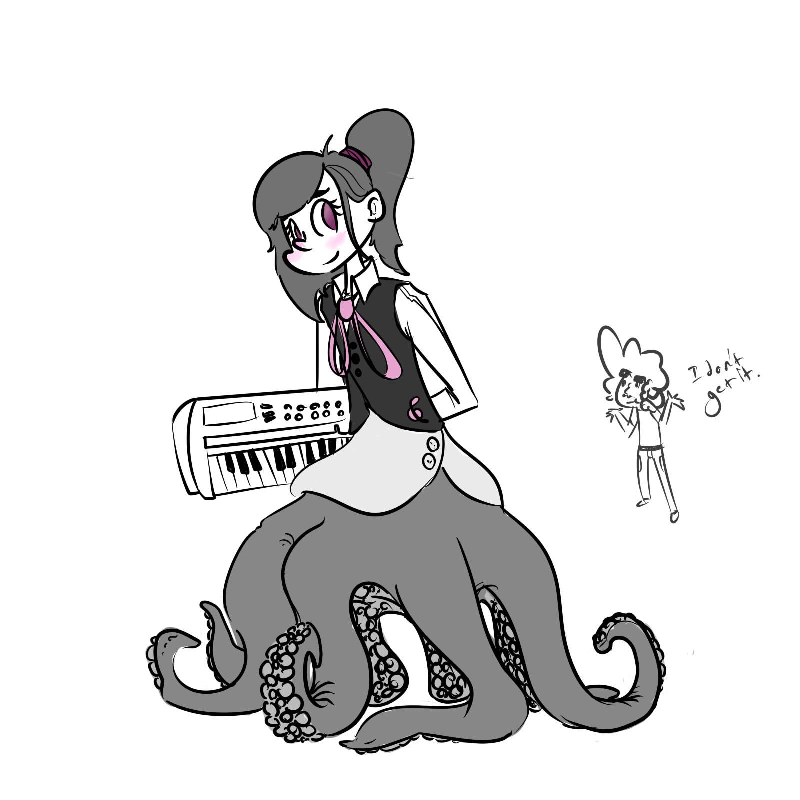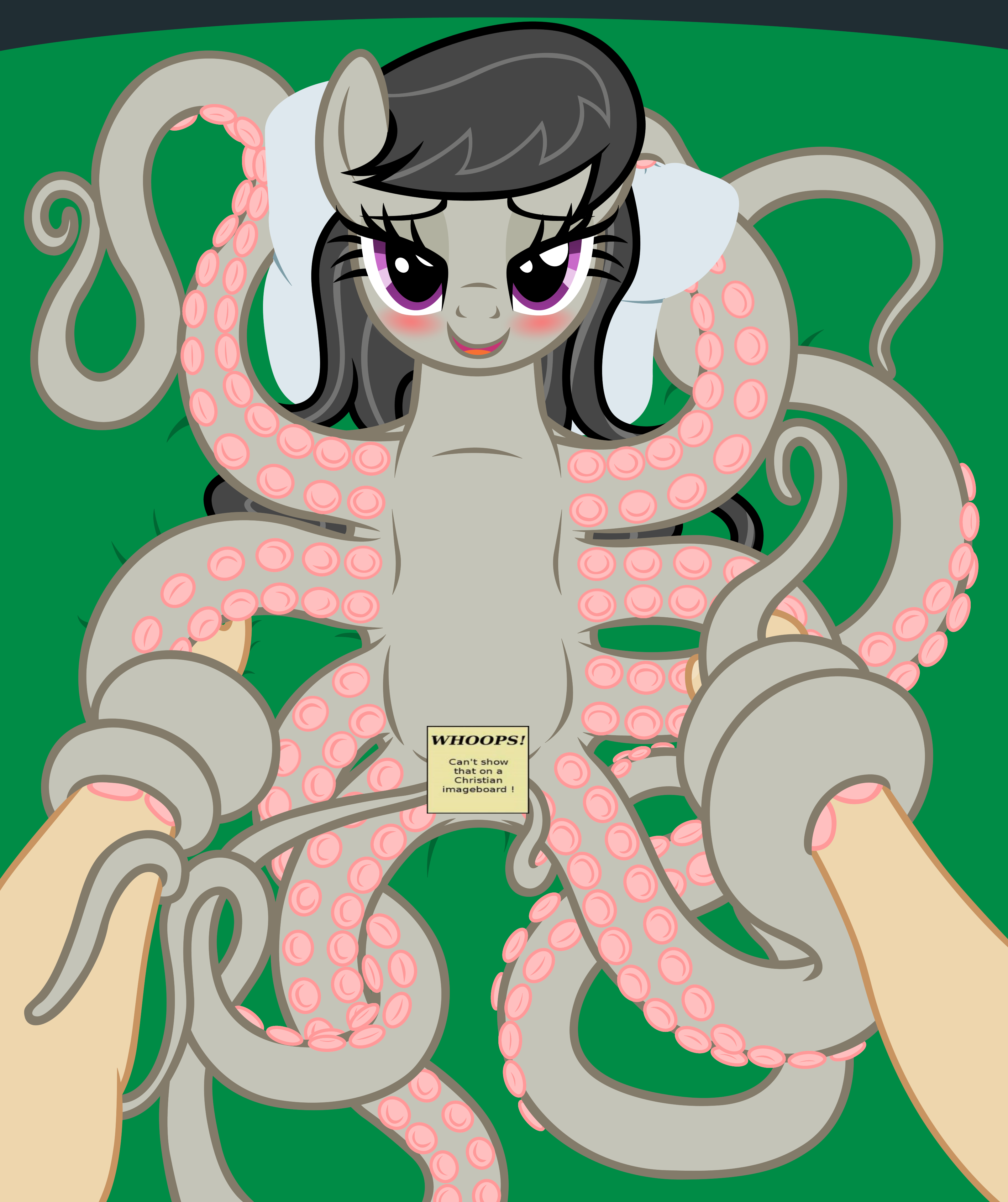 >>43091319I've got nothing for now but I'd enjoy greens where she's a different creature too, for example Octavia secretly being an octopus in disguise like a changeling (makes sense since octopi tend to do that, right?) and thinking Anon will run away when she reveals herself but he instead plaps her octopussy and marries her to have half-human half-giant octopus children