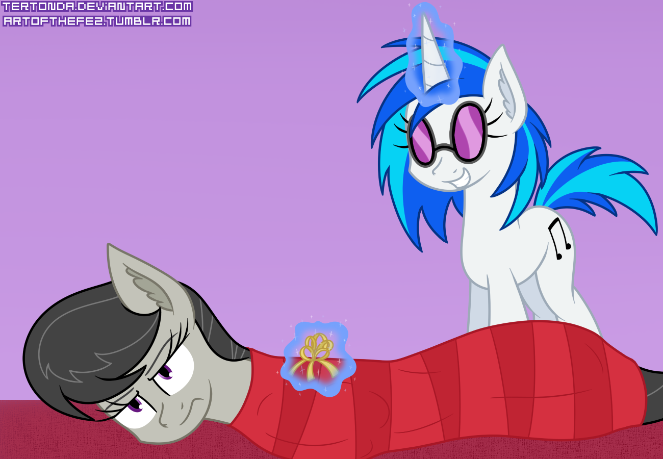 >>43102555Normally Tavi wouldn't become a wubstep artist to honor her passed mare but Vinyl is probably the type of pony to have already brought up this topic before her passing>Hey Octy, if I ever die, I want you to drop the loudest kickass beat ever at my funeral!>I am not doing that.>Cmon, pleeeeeeease?