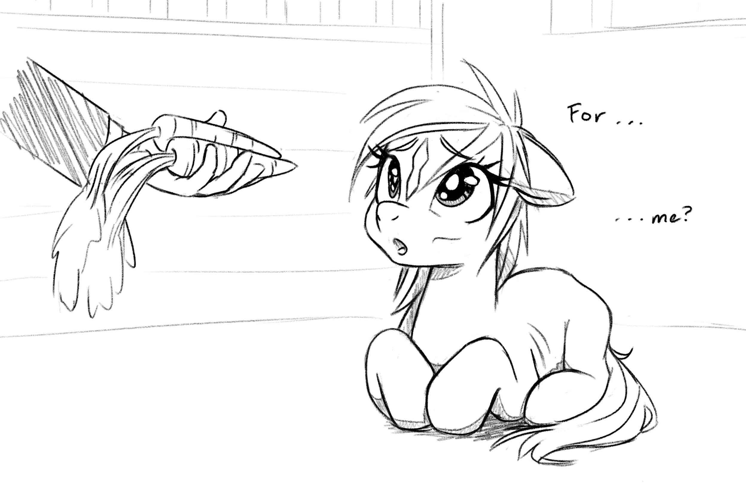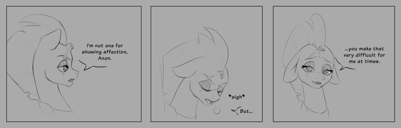 >>43152904>The Pegasus mare looks at Sky Squall, then she turns to you.>"I've got an idea. Why don't you turn Discord's scheme upside down?">You tilt your head."What?">Firefly elaborates.>"Discord can only be a spoilsport if you allow him to be a spoilsport. So don't.">You take a breath."And how? The trip didn't happen.">Firefly smiles.>"Says who? The day isn't fully over yet.">She pauses.>"We have a lantern in the house. You could just grab it and take a stroll right now. The darkness won't pose a problem.">Another pause.>"I bet the lantern isn't even necessary. Especially not for you two. She could lead you safely through the night just like that. Am I right?">#deca.mare nods hesitantly.>"In theory, yes. But...">Firefly apparently does not want to listen to #deca.mare's objections.>Instead, she retracts her spread wing and stands up.>The mare heads for a wooden chest in the corner of the room.>She opens the container and reaches inside.>As she grabs something with her teeth, you can already predict what she is going to present to you.>And your theory is correct.>Firefly unearths the aforementioned lantern and delivers it directly to you.>She carefully places the lantern directly in front of #deca.mare's forehooves and speaks up.>"But nothing. You go and have your fun. That will stick it to him.">Well, Firefly has apparently just "volunteered" #deca.mare and you for a nightly trip.>Partially to compensate for the previous change of plans, and partially to spite Discord as well.>The second part is probably the one which drives her to encourage you so vehemently.>And if you are honest, this does not sound like such a bad idea, all things considered.>Plus, #deca.mare is visibly intrigued by the proposal too.>The whole thing has just one more catch which Firefly seems to miss, however.>She notices your hesitation and inhales.>"Is something wrong?">You look at her."Haven't you forgotten something?">Firefly looks you in the eyes.>"Uhm, what?">You take a breath."Perhaps I should grab something to wear before I stumble around in the woods, you know.">The Pegasus shrugs.>"Oh, alright. If you think that's necessary. It isn't cold outside.">You nod."It's still better though, believe me.">Then you turn to #deca.mare."Prepare the lantern in the meantime. I'll be right back.">#deca.mare agrees.>"I am on it, Anon.">With that taken care of, you turn around and approach the cellar.>It looks like your trip will become a thing after all.