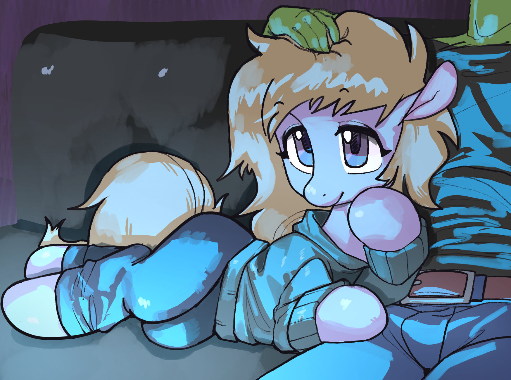 >>43152903186.2>The first thing you hear as you come to are the usual mechanical hissing and whirring sounds of the opening hatch above you.>You slowly open your eyes whilst your mind tries to grasp where you are and what you were doing right before you left the simulation.>Fortunately for you, the dimly lit walls of the abode's cellar work as a solid reminder."Oh, yeah. It's late.">Only a few seconds later, #deca.mare peers into your unit.>You exchange some glances before you speak up."Hey there.">She smiles.>"Good evening, Anon.">You sit up slowly, and #deca.mare takes a step back to give you the space you need.>Then you stretch your arms and take a few breaths."Evening... it still feels like a morning to me.">Physically, at least.>Your mental state is a different matter, given that the day has been very packed with impressions for you.>You are not directly tired in the literal sense of the word, yet you nevertheless remember the efforts of your field work, plus the vivid subsequent celebration.>It certainly was a packed day for sure.>And in a strange way, you could almost swear that you feel a tiny fraction of the resulting fatigue in your actual body as well.>This is of course, as you know, an impossibility.>An illusion of the mind and nothing more.>But it is a convincing one.>#deca.mare helps you to climb out of the machine.>You go on."Guess it doesn't matter what I feel though. It's almost bedtime again.">#deca.mare smiles.>"But the day was not wasted and we had a good time. That is what matters the most.">You nod with a grin."True.">You look for your apparel and find it lying in the corner.>At first, you want to grab it.>But then you reconsider.>After all, it would not make much sense to put it on if you are immediately going to bed anyway.>So the two of you leave the cellar and head for the living room.>Where you find Firefly and Sky Squall lounging on a pillow, each embracing the other with a wing.>Firefly spots you first and greets you by waving a forehoof.>"Hello.">Sky Squall speaks up.>"I see you've chosen not to spend the night in the cellar.">You shrug."Of course I don't. It's...">You look at #deca.mare."...much more pleasant up here.">#deca.mare smiles again.>Then Sky Squall responds.>"Understandable.">You look at the stallion again.>Then he goes on.>"But doesn't that mess with your natural rhythm?">You shake your head."I'll manage. The only thing that's bothering me is the ruined morning trip.">Sky Squall nods.>"Yes, it's a shame that Discord has been such a spoilsport.">You are about to agree, but Firefly suddenly starts to chuckle.>Sky Squall is the first to react.>"What's on your mind, my dear?"