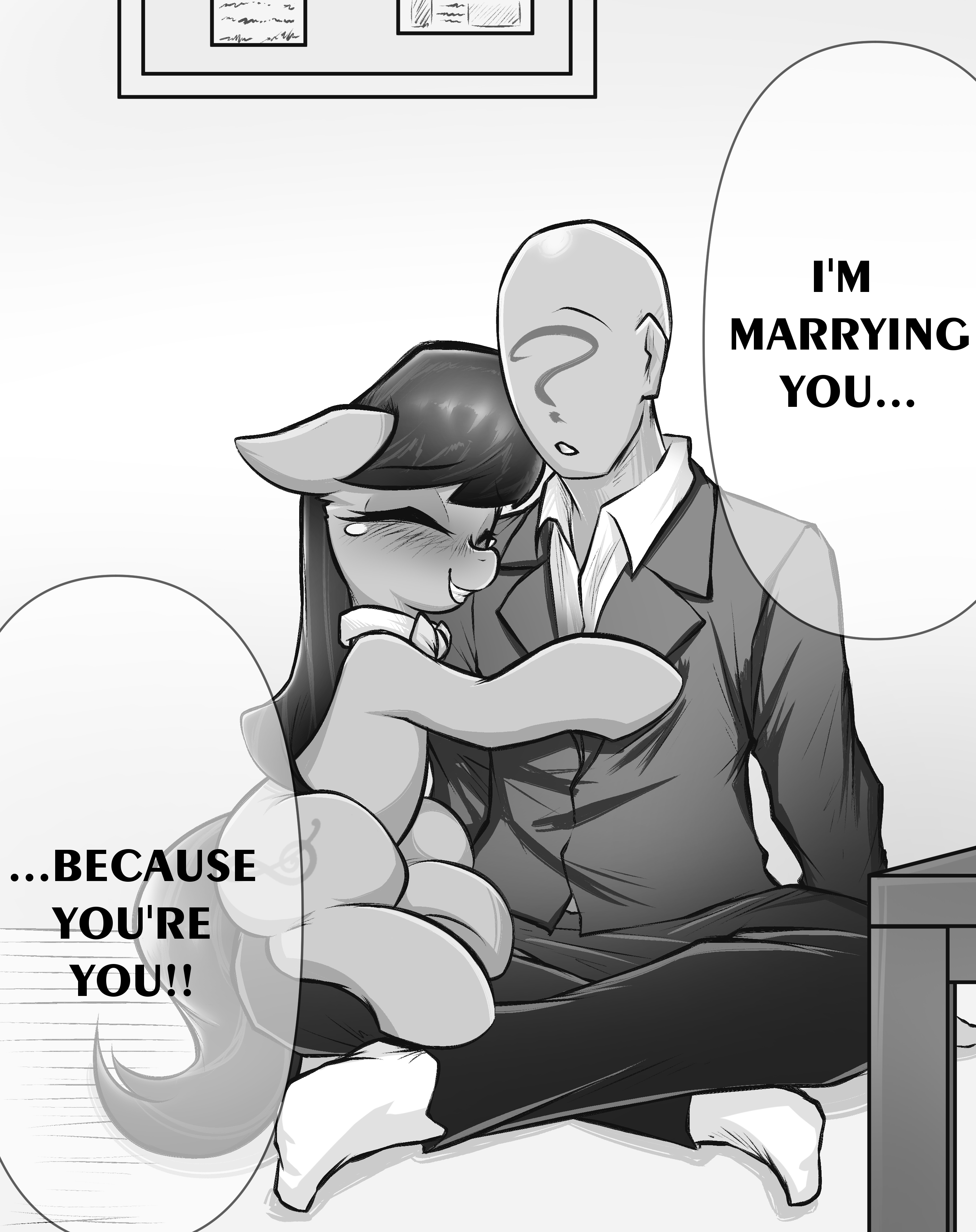 >>43161568Does she blush because she doesn't want to be seen in this compromising position, or is she red because her rump sits straight on Anon's crotch and he goes mast?