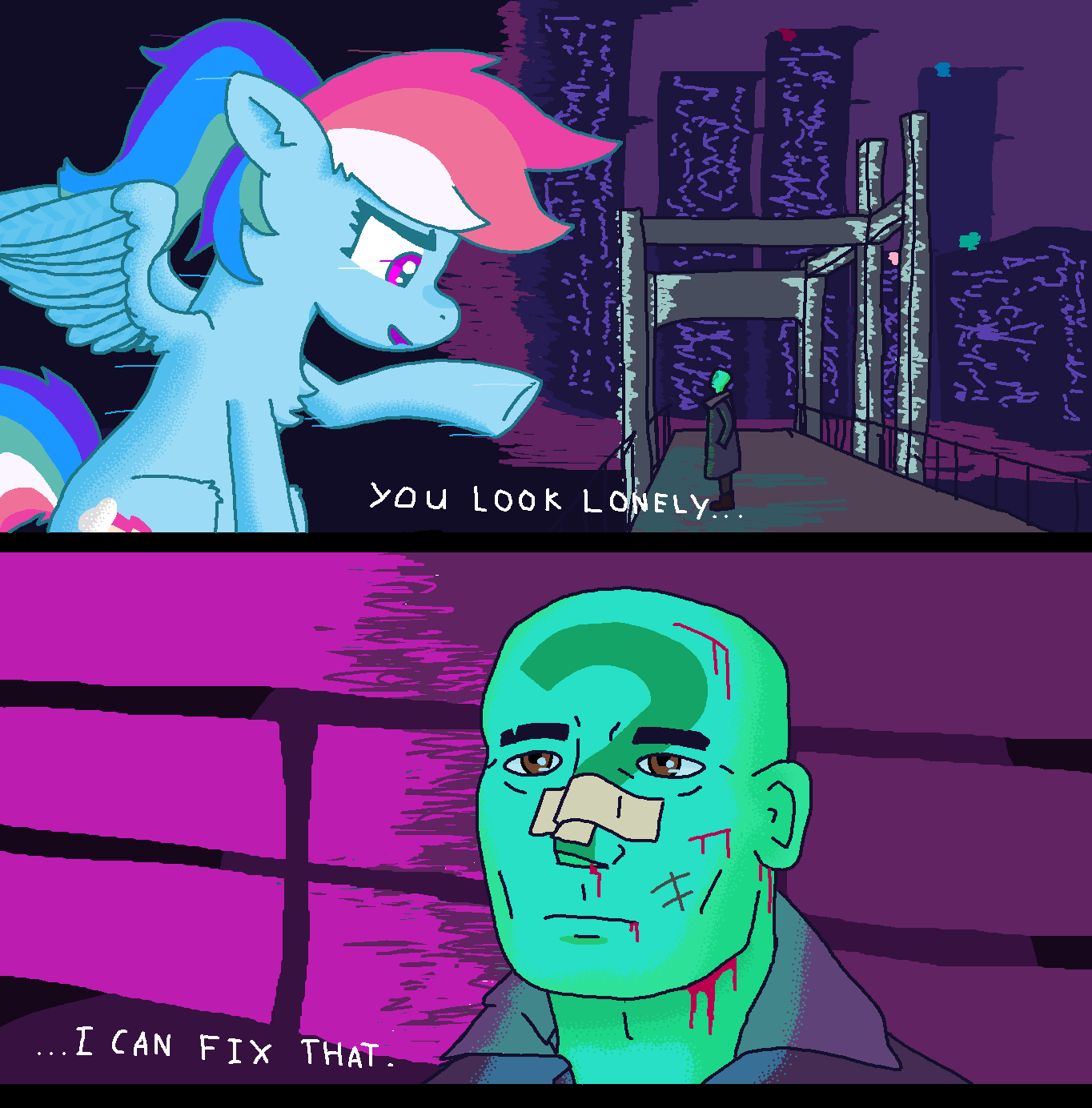 Here’s one of my favorite anon x pony dubshttps://youtu.be/U9ltvmgPFKs?si=vrOu-eU70gK9TJTr