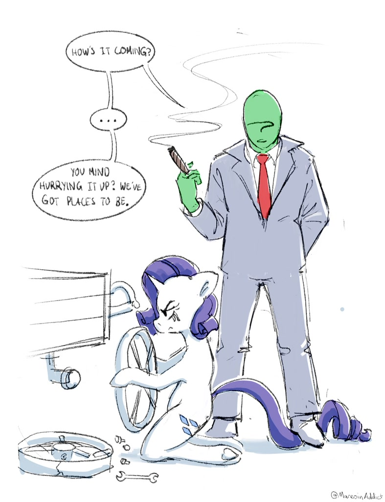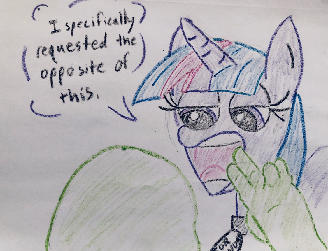 >>43098636>you never get any of them.Well, I'm admittedly not exactly well-versed in this sphere. Apart from older classics and some niche stuff, I'm pretty much out of the loop. Especially when it comes to recent content. I think I didn't keep track of anything that was released in the last ten years or so, except for pony and a small selection of games. Which reference did I miss this time?>Another opportunity to twist his request!>He did not say he wants to control it.I've got to admit that this is an option which I haven't considered. It would be one hell of a way to give Discord what he asked for without giving him what he actually wanted. And I'm sure Discord would at least respect that turnaround for the sake of the craft itself, even when it would absolutely tick him off.>By this I meant something like preventing Anon from leaving.Discord has no control over Anon or his actions, and his influence does not reach Anon's proxy or any other external component. He only has full creative control over his isolated pocket within the system, meaning that he can set the stage and determine how "reality" manifests itself for others in his personal instance of the simulation. As such, Anon has no direct influence on the scenery itself, but he retains the ability to come and go as he pleases. So when he finally decided to depart, Discord had no means to stop him. He could only pick how this departure is represented in his world. So he chose to see Anon getting flushed out as a farewell trick. He could have also chosen to let Anon explode in a cloud of confetti or watch him phase out like a ghost. The end result would've been the same.