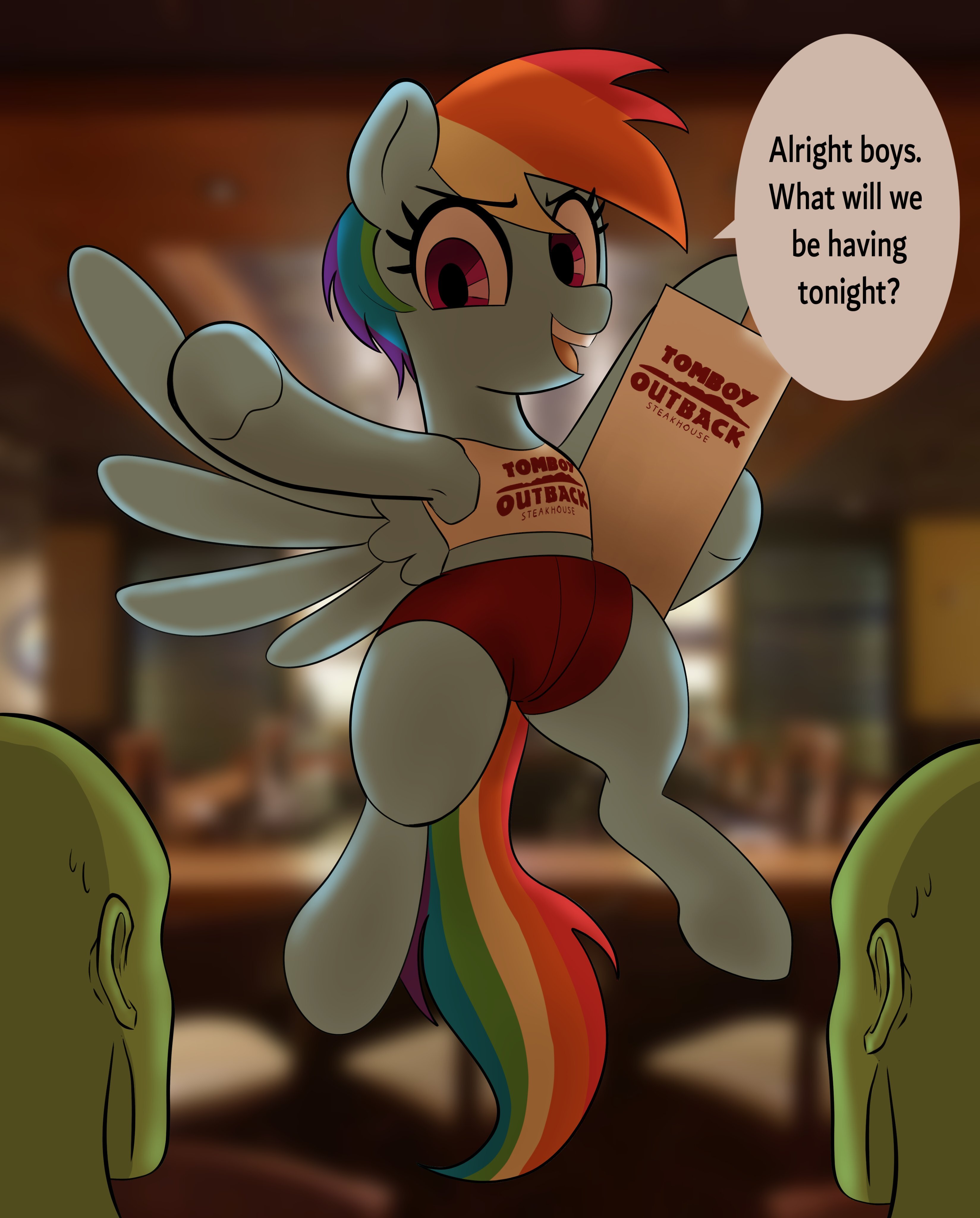 >>43105520"So wait, you were faking being a guy this whole time?">"Oh come on! I kept up with you and all the other guys at fight club! What does it matter!? It doesn't change anything!""Goddamnit, Rainbow. You know it was a guys only club and you still kept up the lie and joined up with me anyway! Fuck, we can't tell anyone. This is gonna make this a lot harder..."