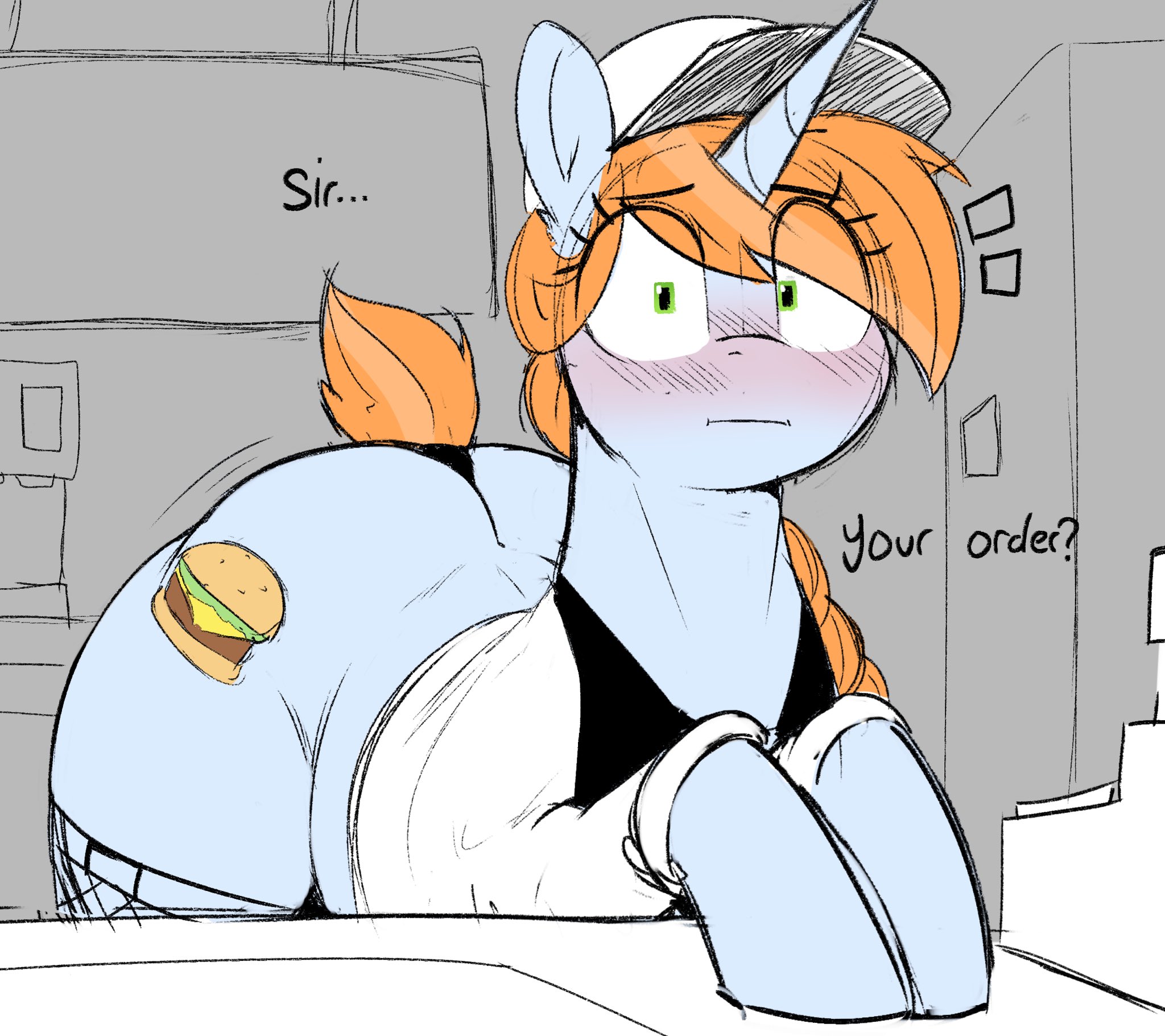 reposting >>43106422>Be chilling on Dash's couch>She gets up and starts flying towards the kitchen>"I'm gonna get a cider from the fridge. You want one?"Pfft! Yeah, right. I ain't getting drugged.>"It's not drugged."Has Fluttershy been in your fridge?>"No.">Then, for more than a second, she actually thinks about what you said.>"...Well, yeah, I guess so."Then all your shit is drugged.>"But when she came by it was, like, over a week ago, and she was just bringing over some protein shakes for Tank."Don't care. All your shit is drugged.>"They're actually not bad... not that I've actually tried drinking them or anything."You haven't been feeling extra sleepy lately, have you?>She shrugs. "I always get like that after I've had a few. It's good for naps."Yeah. All your shit's drugged.>"So you really don't want a cider?"Can't trust it, Fluttershy was here.>"I've been drinking it this whole time though, and it's been fine."Can't trust it.>"Whatever. I'm gonna get a drink before we go to the Hayburger.">Be at the front counter of the Hayburger>Decide not to wait for Dash's alcoholic ass, who is lagging behind>Double Decker, the qt wagie mare running the register, is trying to take your order right now>"Sir, all I asked was if you wanted a shake with that."Pfft! Yeah, right, I ain't getting raped.>"Sir." She looks grumpy. "That's not what I said."Has Fluttershy been here?>You really hope not, you haven't had anything to drink in days>You're so fucking thirsty>"No, she's still banned."I'll bet she's been here. In fact...>You take a closer look at the other pony behind the counter, the one that's had her back towards you the whole time and has been sweeping the same already-clean spot for over five minutesI bet that's her right there.>The sweeping pony freezes, then turns around and reveals herself to be Fluttershy, wearing a fake 70's porn stache (it's pink) and some Dahmer glasses as a disguise.>Double Decker turns and inspects her new hire; she squints, focusing specifically on the mustache>"You said you were a part-timer.">"I a-am," Fluttershy says in a fake voice, stammering, "the name's Dustyshy, from the w-weekend crew.">She leans in close and whispers in Double Decker's ear:>"Make him get a shake!">Then Rainbow Dash crashes through the window and lands on the counter in a drunken heap>She's out cold, with bits of broken glass embedded in her bloody forehead, snoring like a horseI knew all her shit was drugged.>"Not all of it," Fluttershy says. "But I do think she's been drinking Tank's protein shakes, even after I already told her not to."Where's the logic in drugging Tank's protein shakes?>"Oh, it can't hurt him, if that's what you're worried about. He's a tortoise, and they're already very naturally sleepy."Okay.>"And I may be running out of places to hide all my drugs.">Double Decker looks at the mess Dash made, tells Fluttershy to clean it up, then loudly announces that she's going on break