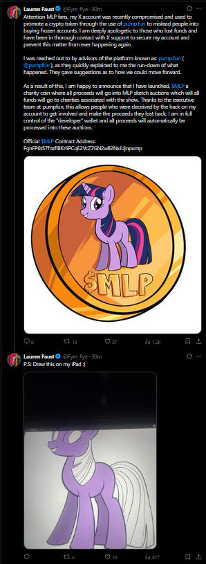 >>43108156is the first tweet about mlpcoin "thanks for the support"? how would anyone know about it TO support it before then? unless the entire thing was made up and the scammer didn't really scam any money