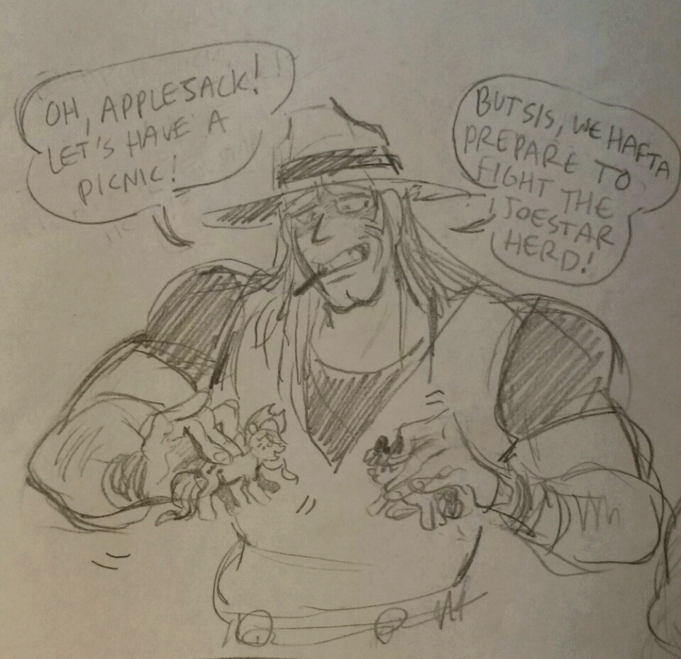 >>43123623For Applejack, I once had this idea of her stand being a combo of something like Hermit Purple/Stone Free/Oh Lonesome Me. Something, like being able to transform or extend her body into roots and vines that would allow her to use them like a rope that she can freely use, exponentially increasing her already great lasso skills, while being able to freely move along her own vines, it maybe could also have some form of plant control over the environment.It would be a stand that's more focused in versatility, precision and range than sheer power, but another fun thing for me, was the imagery of AJ using her own vines and roots to cover parts of her body, in order to get close and personal with stands of short range and power, using her own exaggerated physical strength to contest with those types of stands. I got the idea from imagining that if Jonathan Joestar ever got to use his stand that was like a Hermit Purple, he legit could use his vines like brass knuckles to contest in Stand rush attacks because of how much of an aboslute unit he was.