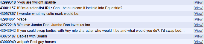 >>43146053hope it involves /mlp/t. began to poniponi because of horsefuckers' insane activity during April Fools' of 2025