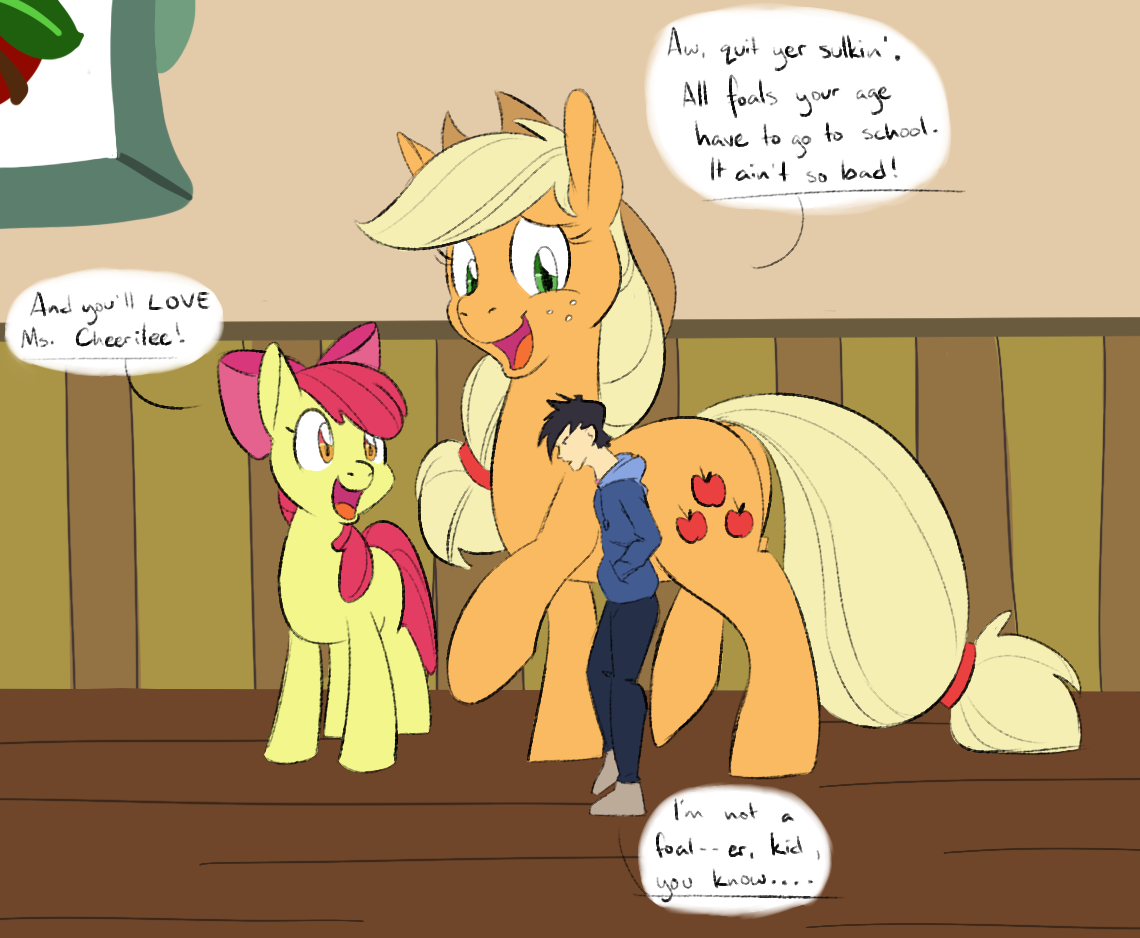 >>43125014>I don't see the Apple.Why is petting her belly making her think of Applebloom?