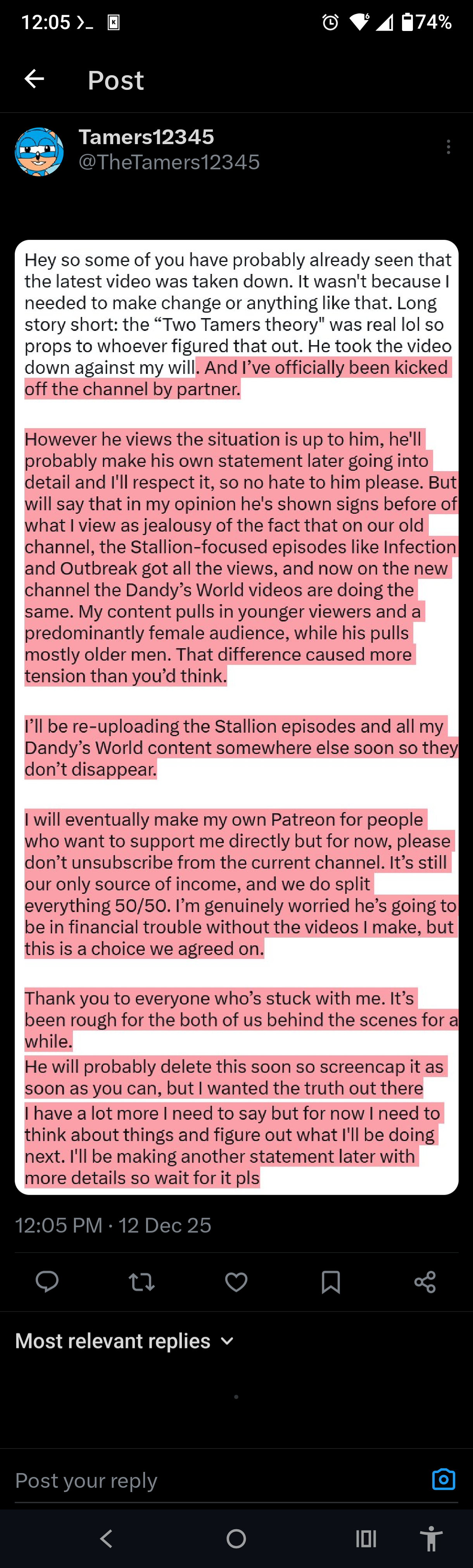 >tripfag shares tamers fan content channels and then one of them deletes their channel that dayHmmm