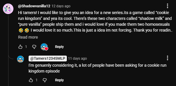 >>43121514>using the worst taylor swift song in your video.I actually like that song.But to answer the question, i assume it's because he didn't want the episode to be overshadowed by Digital Circus, or there was a scene so NSFW that it would have gotten their channel deleted again.>>43121282>Stallion Tamers making female characters into men obsessed fujoshi's while mare Tamers shits on stallions in turn.At first i had nothing to say about this, but after having recently watched the SU Brawl At Pizza Hut video and watched as the credits was a slide show of yaoi, i wonder if mare himself is a fujo.What would that make this claim with this added context? Or did stallion work on that video too? If not then is stallion mocking mare for his yaoi fetish? Or is this all one big assumption with no real evidence to back it up?Here's Brawl At Pizza Hut by the way: https://www.youtube.com/watch?v=BWporiF6mucThe yaoi credits start at 17:40 but i recommend watching the entire video as it's hilarious.