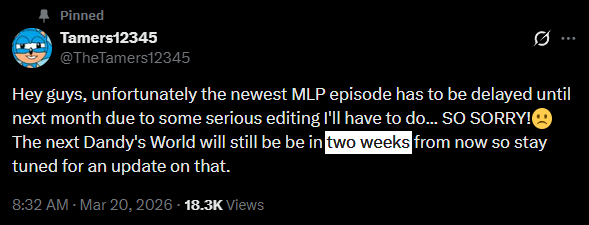 Patience is Key EditionTamers Official Youtube Channel: https://www.youtube.com/@Tamers12345MLPTamers Archive: https://www.tamersarchive.com/Music used in Tamers MLP videos playlist: https://open.spotify.com/playlist/6Et4oZMbjz9W7YFRLu45w2?pi=dxGSpbnnSEKZ3Tamers MLP Character Tier List Maker: https://tiermaker.com/create/tamers12345-mlp-character-tier-list-18696727Tamers Episode Tier List Maker: https://tiermaker.com/create/tamers12345-mlp-episodes-movies-tier-list-18696727Tamers MLP Relationship Tier List Maker: https://tiermaker.com/create/tamers12345-mlp-relationship-tier-list-18696727Latest /mlp/ Episode/Movie/Trailer: https://x.com/TheTamers12345/status/2034617007627288859Previous Thread: >>43109325