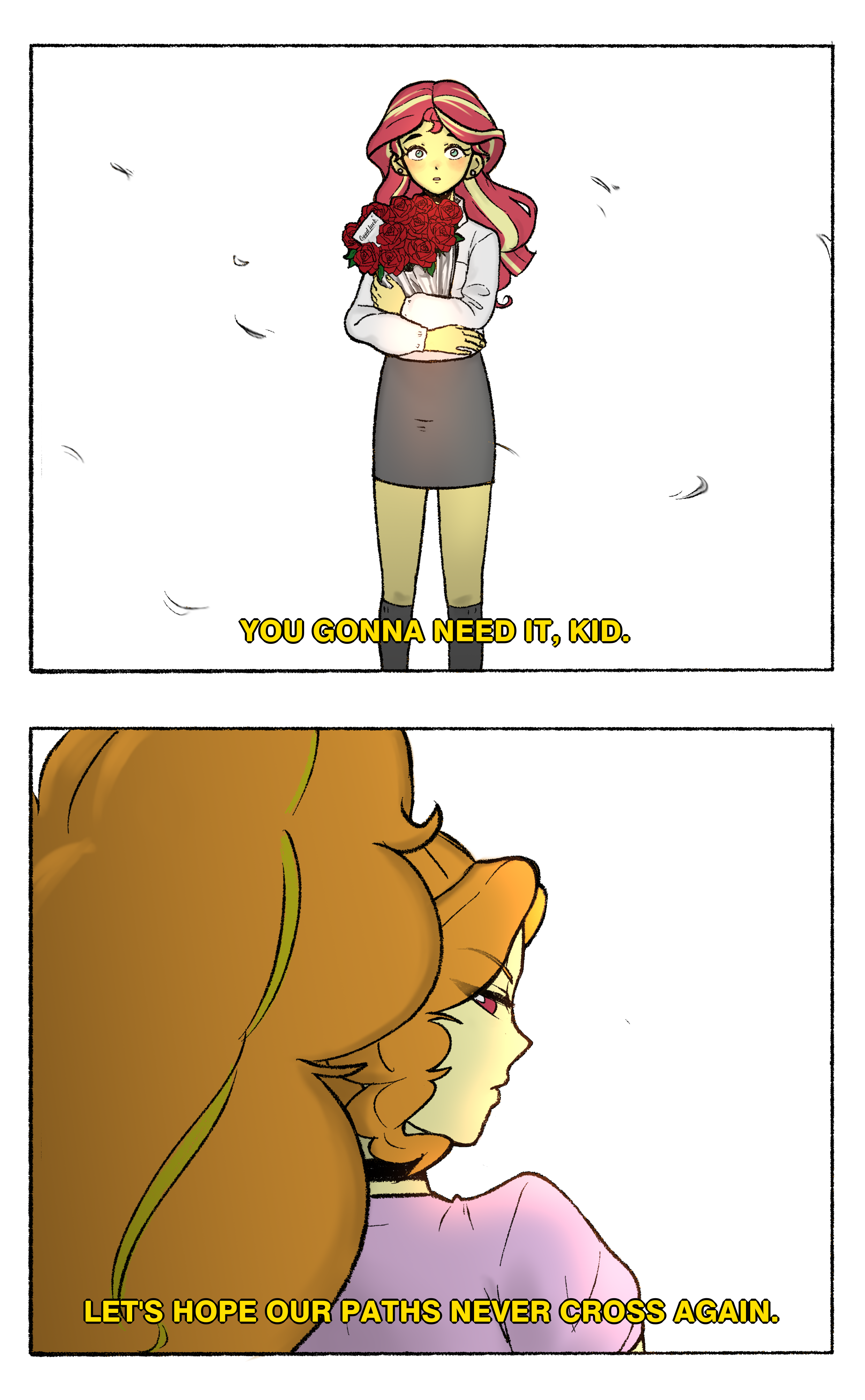 >>43177673Everything's slow today. The captchas weren't even working at one point.Anyway, I always imagined that Aria and Adagio would butt heads often, but not that intensely, and they would always resolve things before the conflict became a problem. I also imagined that both would fairly protective of Sonata, who would have more of the "little sister" role.It does say something that truly turning them against each other doesn't appear possible. Even at their worst they don't really pull each other down. Their goals always ultimately include each other.It's not much material to work with, obviously, but what we have suggests they were already loyal to each other before their banishment.