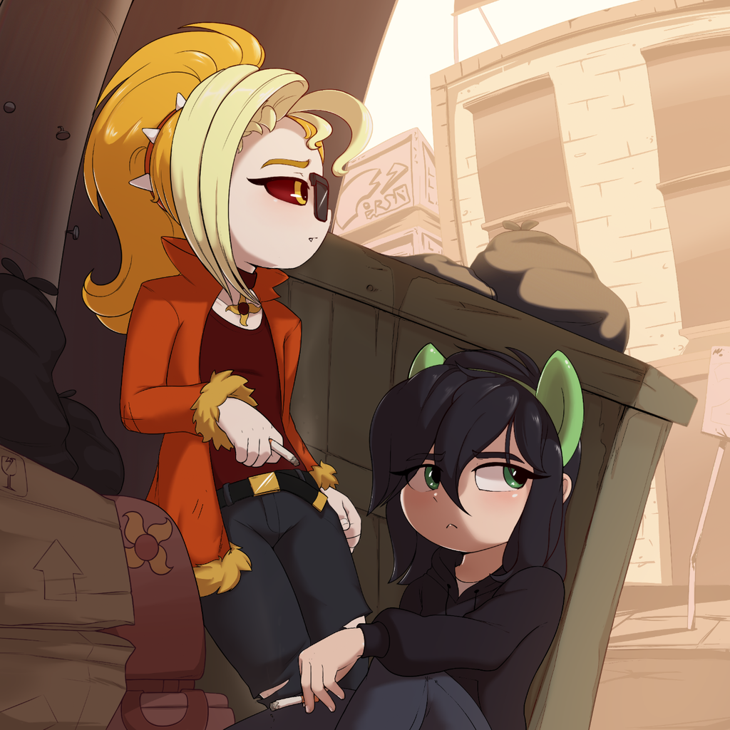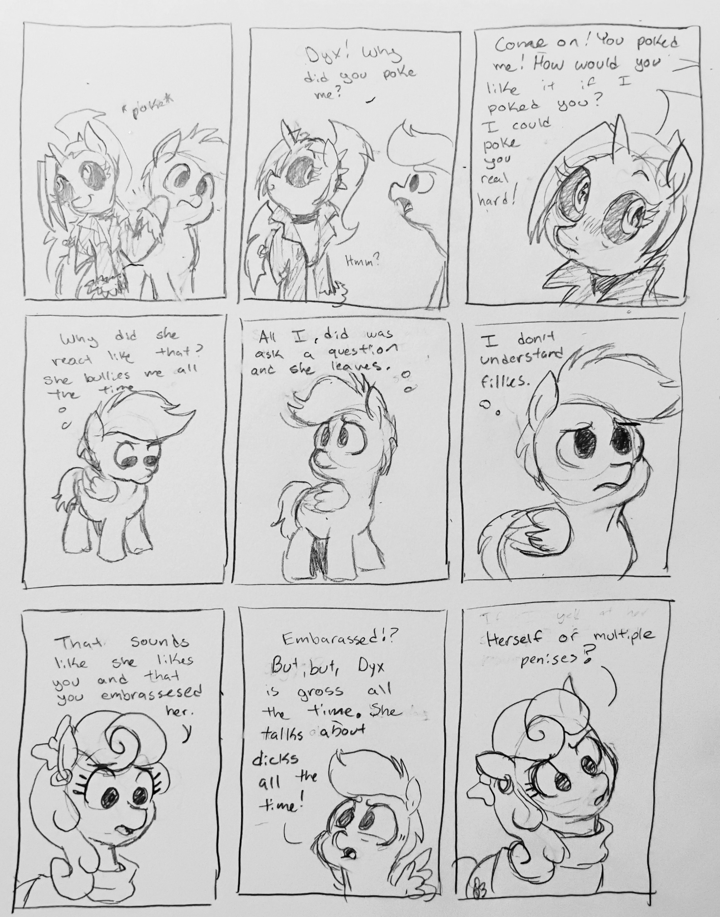 Dyx acts like she's hot shit but Nyx is the one with the combat cutie mark. Nyx could probably easily beat the shit out of her.