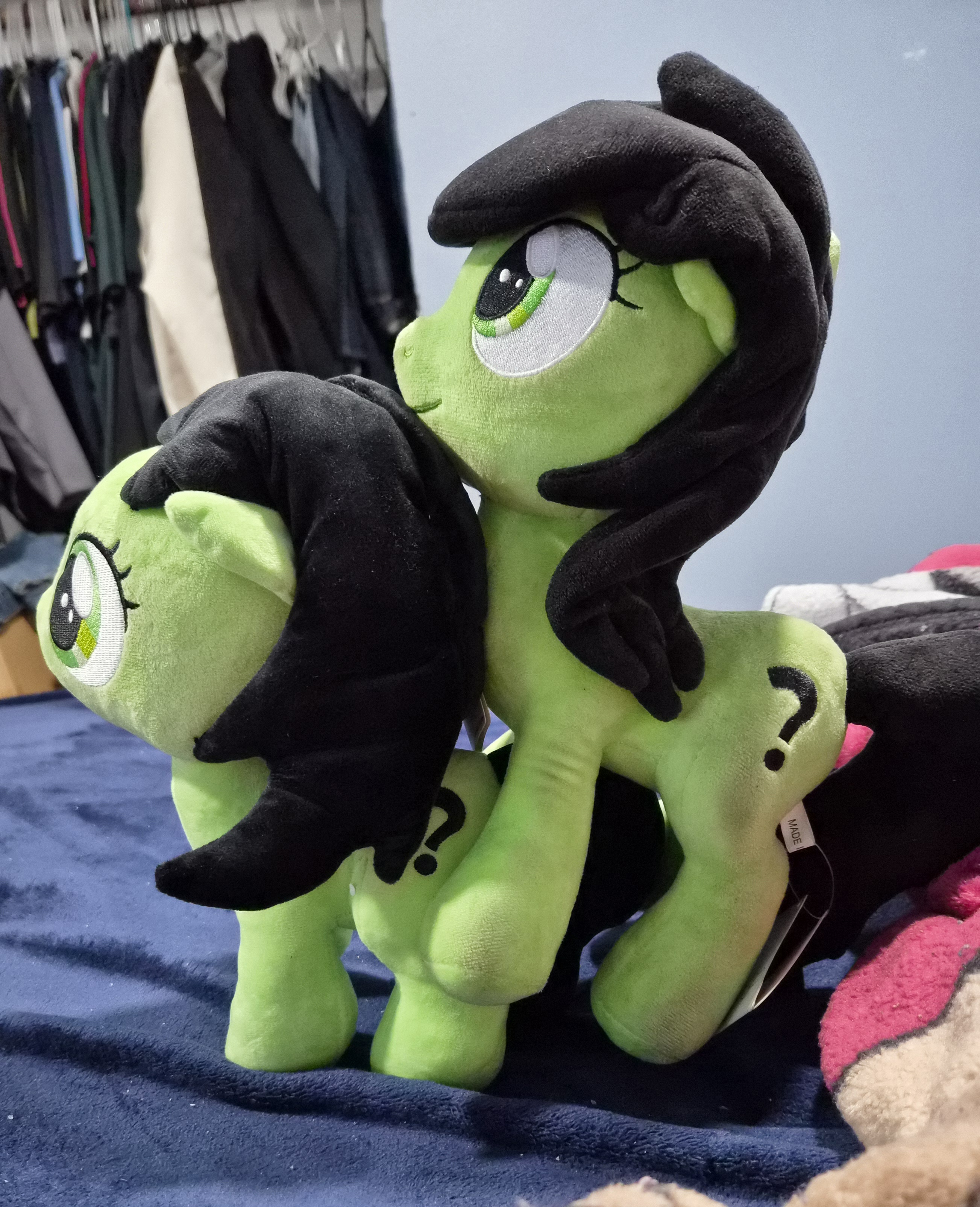 >>43145832We may be able to get a Littlepip plushie from Symbiote for less. But that would be far off.>>43145942So here's the thing. Filly proportions actually mean one of two options.>1. 12 inch body with filly sized head and body. Like the v2 filly proportions>2. A smaller plushie. Pic related. It's what they sent me for comparison. Their filly Luna is actually 12 inches like the rest of the Symbiote plushies. We could get a smaller filly, or we could just go with a 12 inch filly. It may make more sense to go with the 12 inch filly and just let her mog the other plushies. But what are some other good arguments for or against smaller plushie?>>43146155Just have to reach out to Symbiote. >>43146668>Anon plushie with his little suit and tieDon't tempt me.