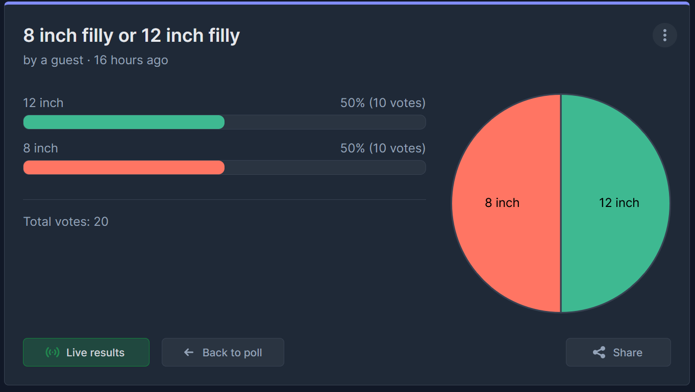 >>43149772Yeah sorry that was me. You can just close the poll and go with the 8 incher.